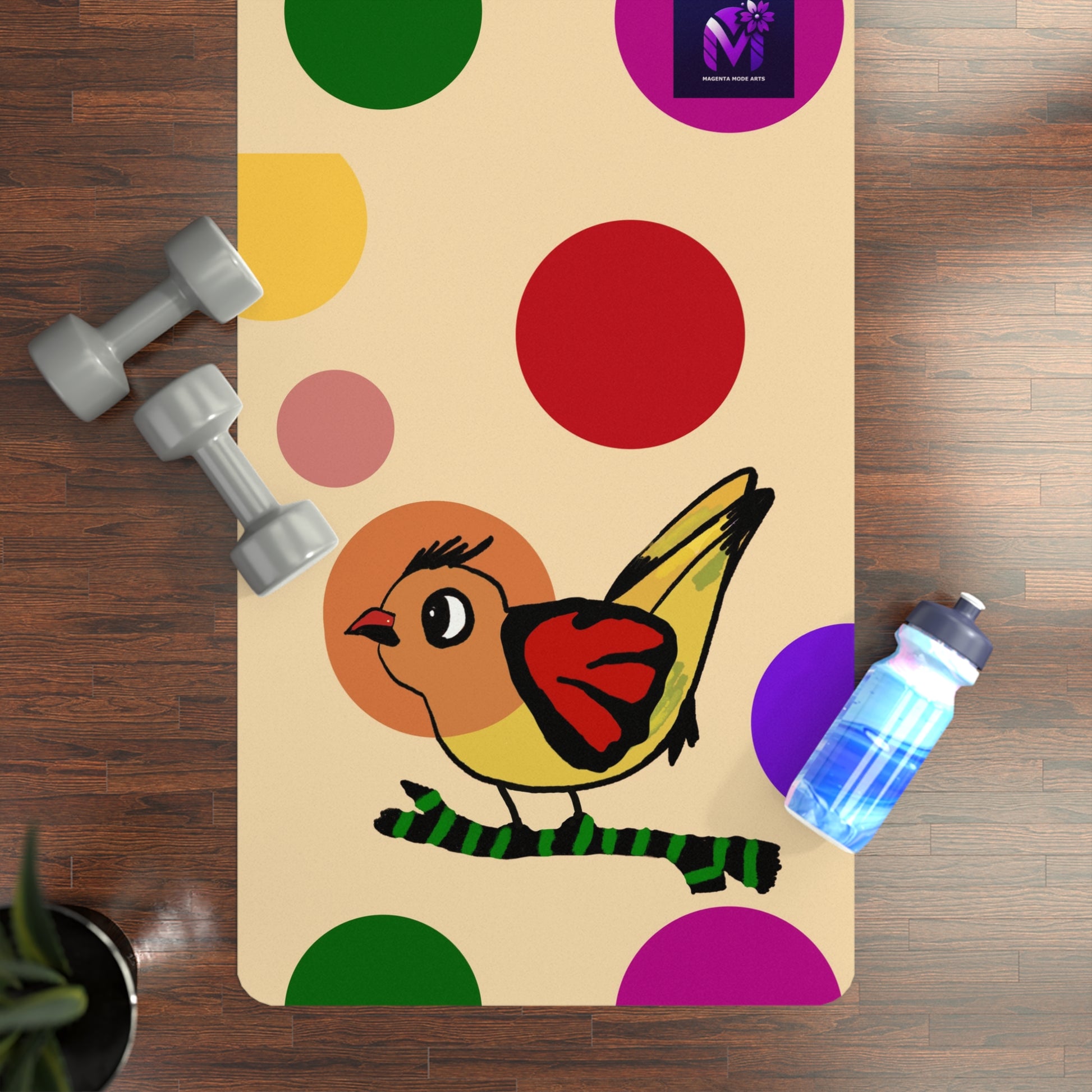 Balance Your Holidays with Every Pose with this lightweight yoga mat featuring the "Dotted and Feathered" art print from Magenta Mode Arts store.
