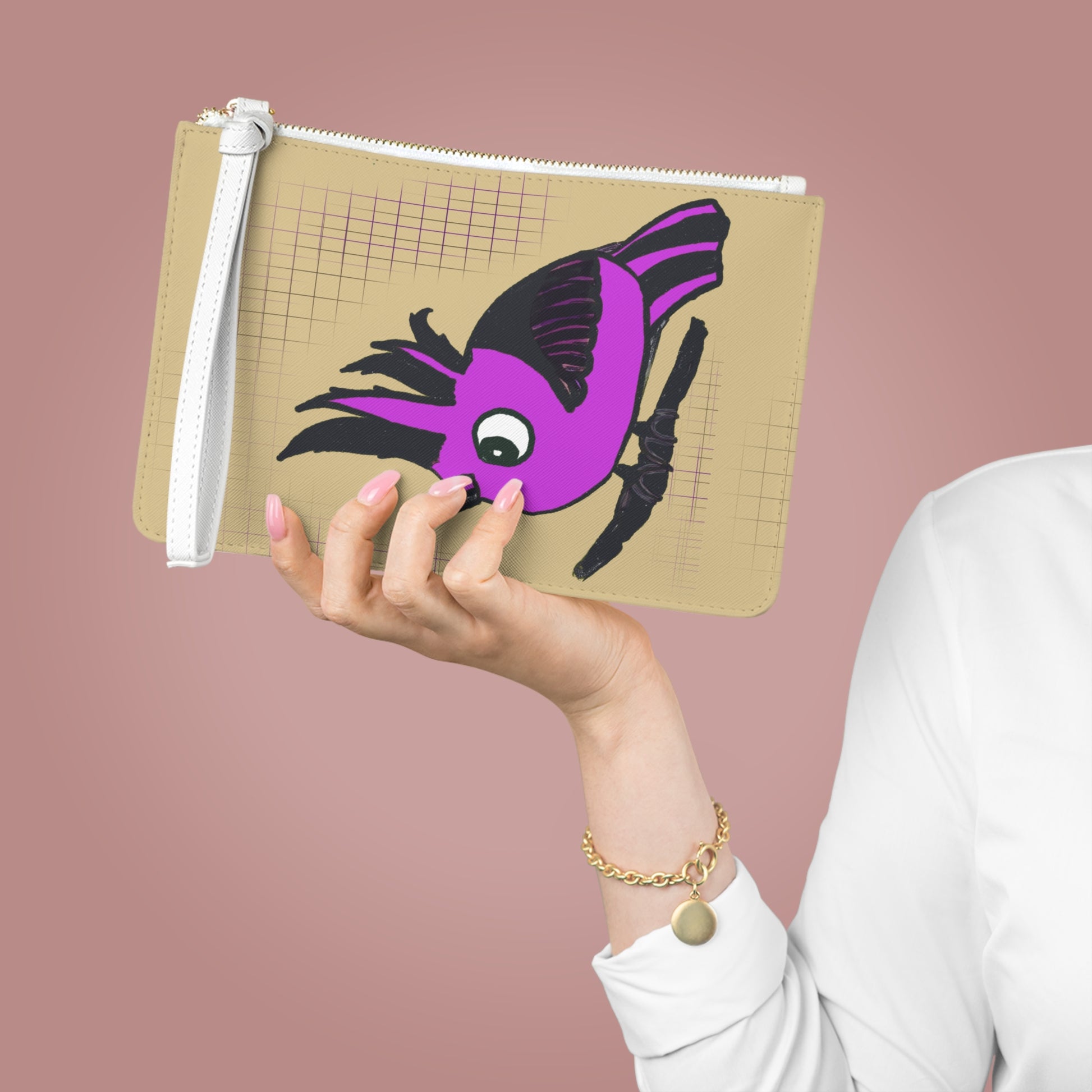 Designed with a loop handle to quickly free your hands, this custom clutch bag is made for the fashionista on the go. It can hold everyday essentials such as a phone, wallet, and keys. It features a zip fastening and a fully lined internal pocket.