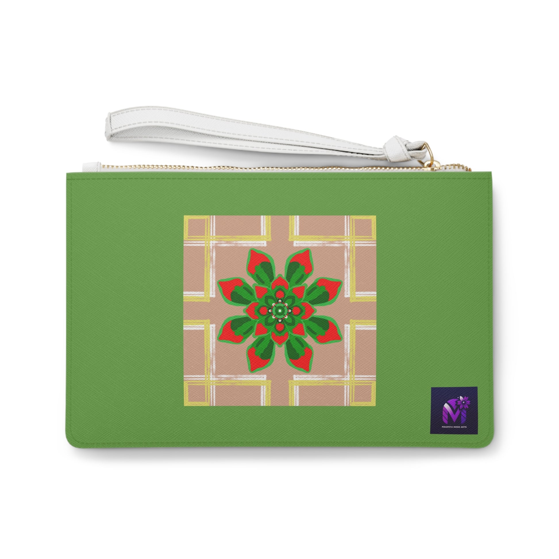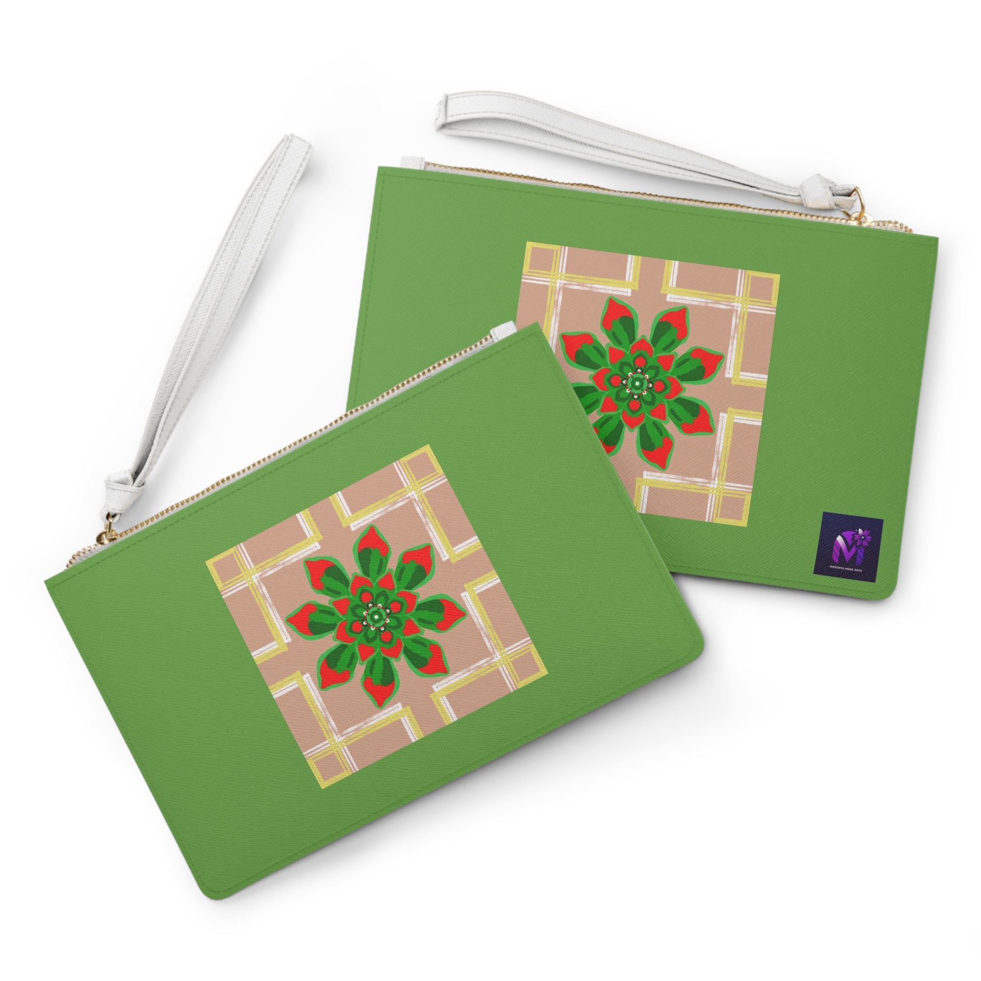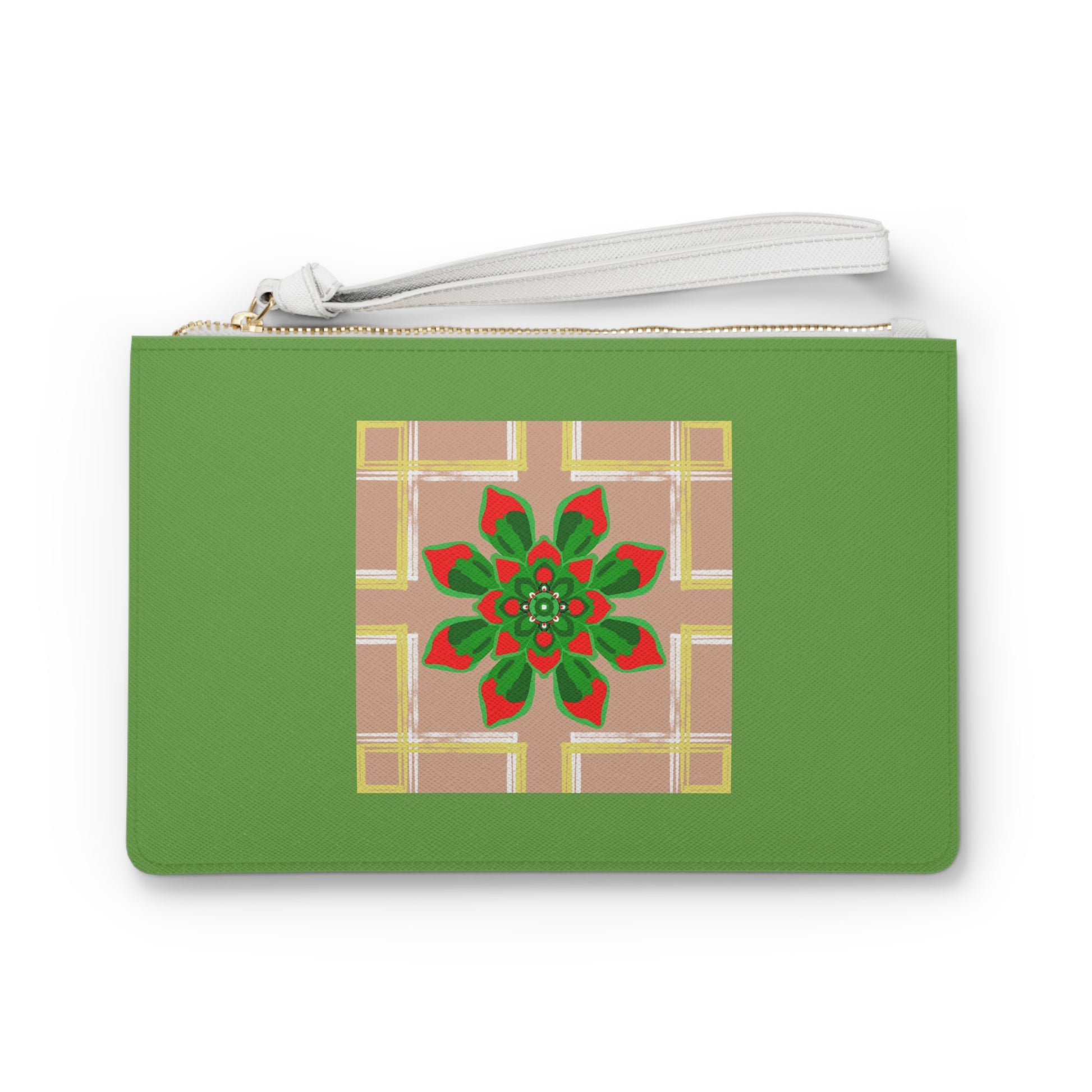 It is made of vegan leather in the Saffiano pattern finish that was invented by Prada with a lovely Red, Green and Beige festive print from Magenta Mode Arts.