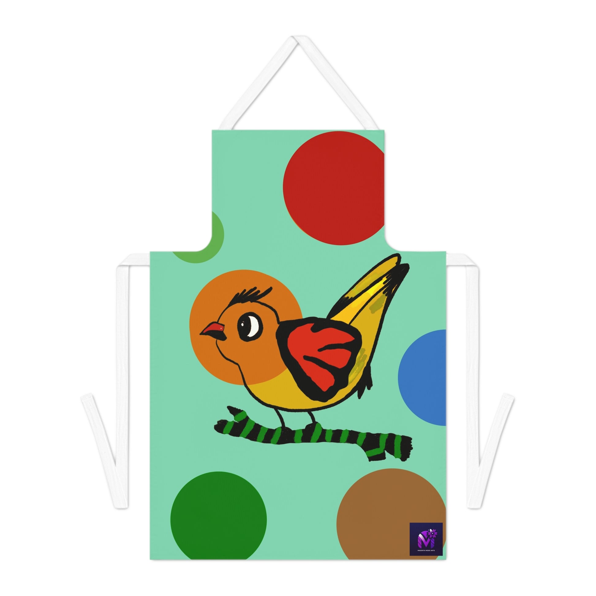 Dotted delights & feathered flights apron from Magenta Mode Arts store: bake up some holiday magic everyone will adore!