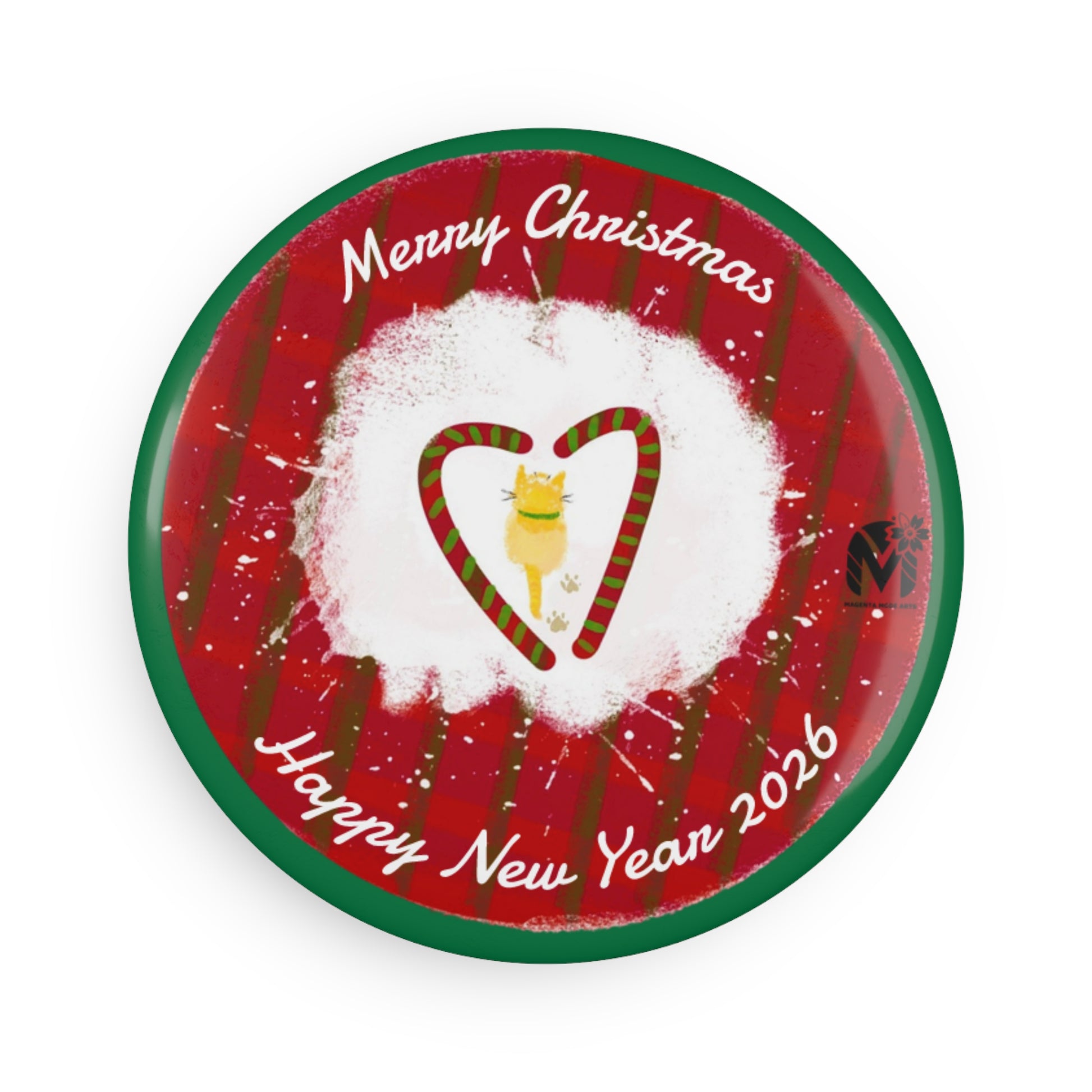 Add festive charm to any metal surface with custom magnets from Magenta Mode Arts,featuring heartwarming designs like Santa, reindeer, moon angel, kitty and pup in snow, or candy cane marshmallows.