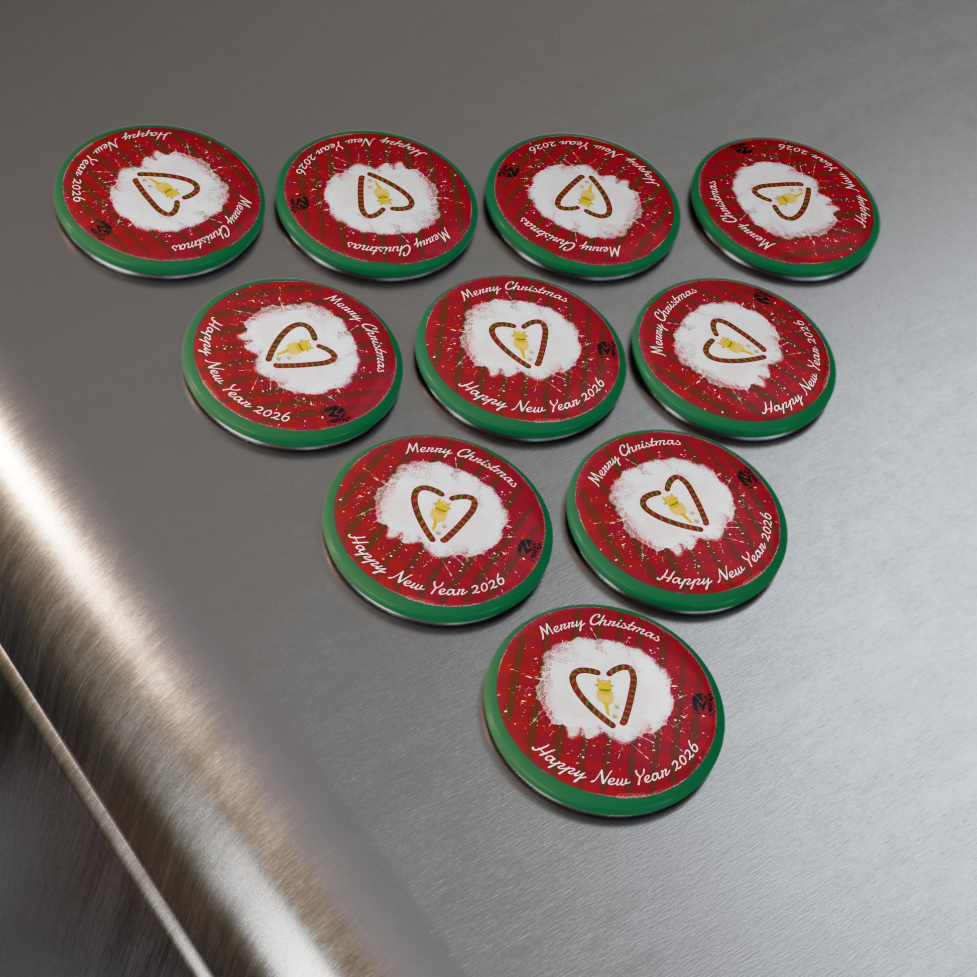 Cute Kitty Christmas and New Year Magnet, Round (Set of 10 pcs)