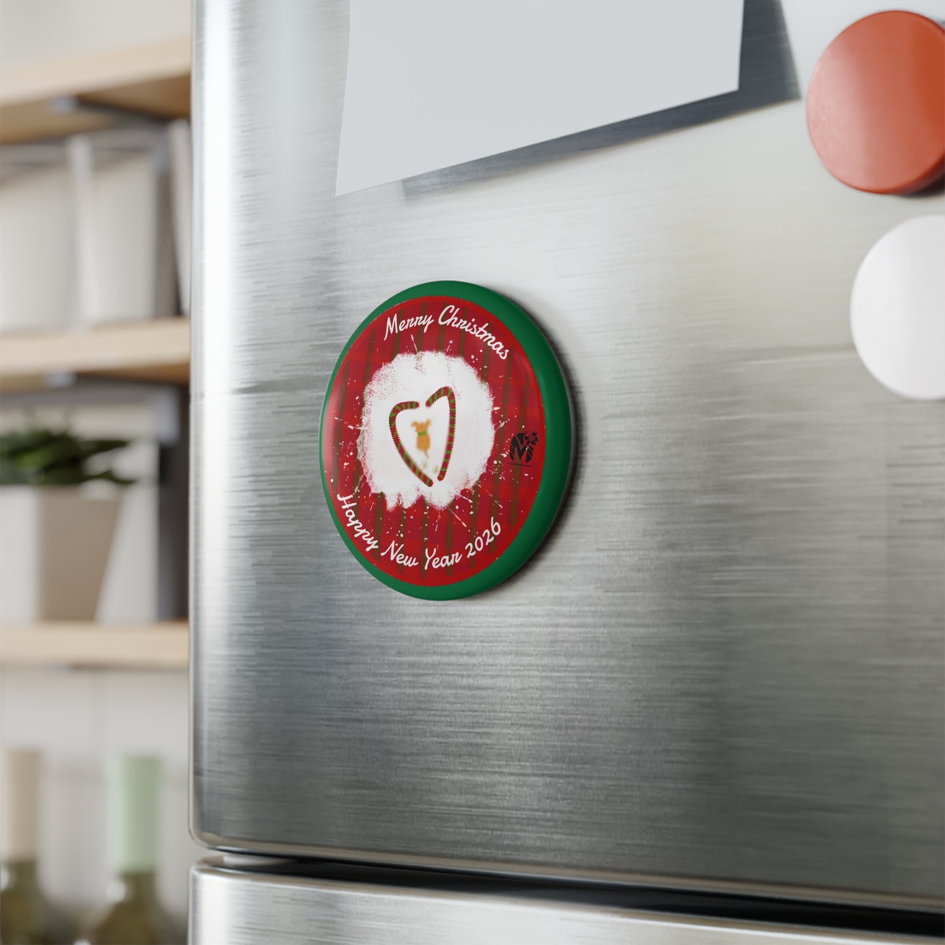 Add festive charm to any metal surface with custom magnets from Magenta Mode Arts,featuring your family name, kids, or pet names or New Year wishes.Choose from heartwarming designs like Santa, reindeer, moon angel, kitty and pup in snow, or candy cane marshmallows.