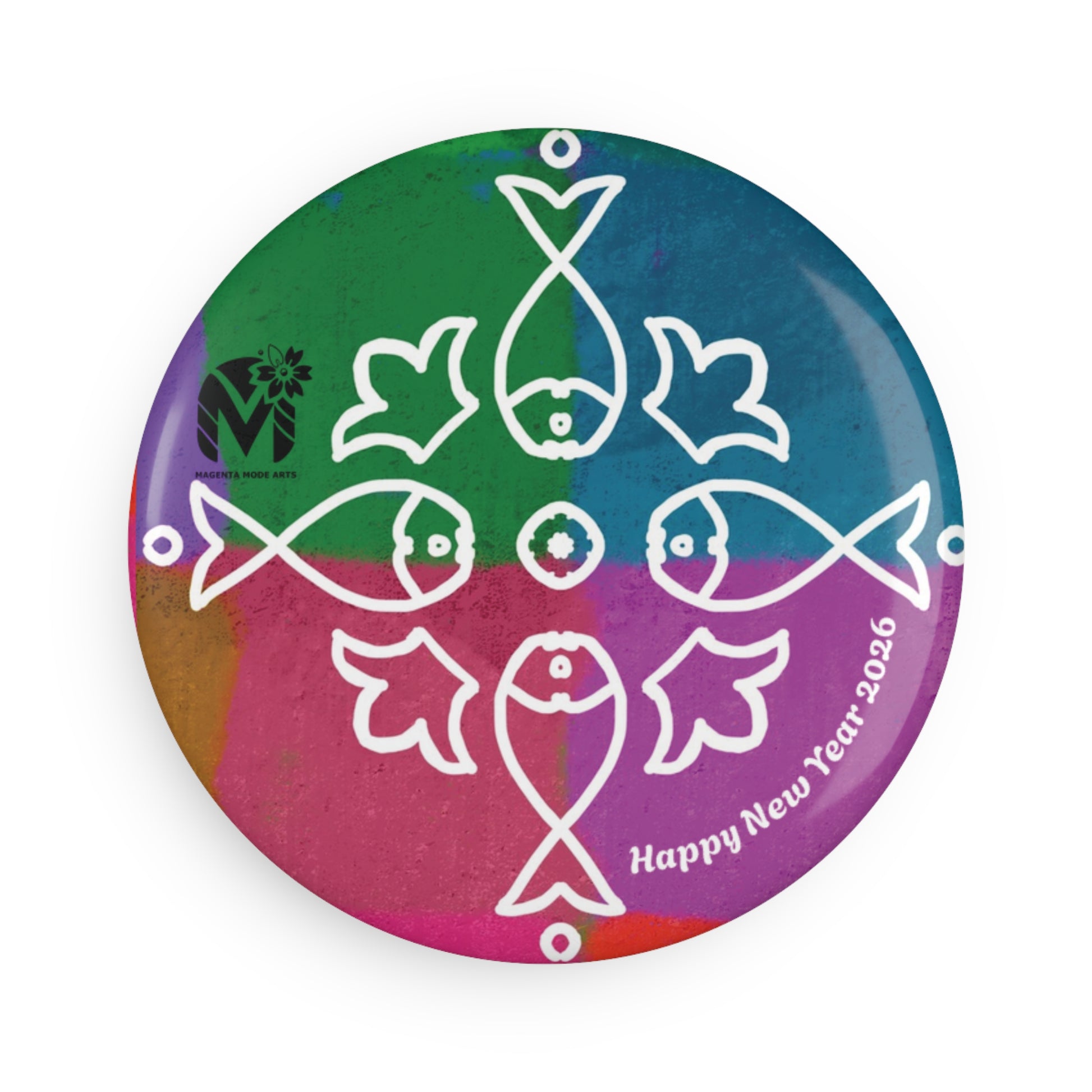 Celebrate the timeless beauty of traditional South Indian art form of kolam with magnets from Magenta Mode Arts. At the heart of this design swim graceful fish and turtle motifs, symbolizing prosperity, longevity, and harmony with nature.