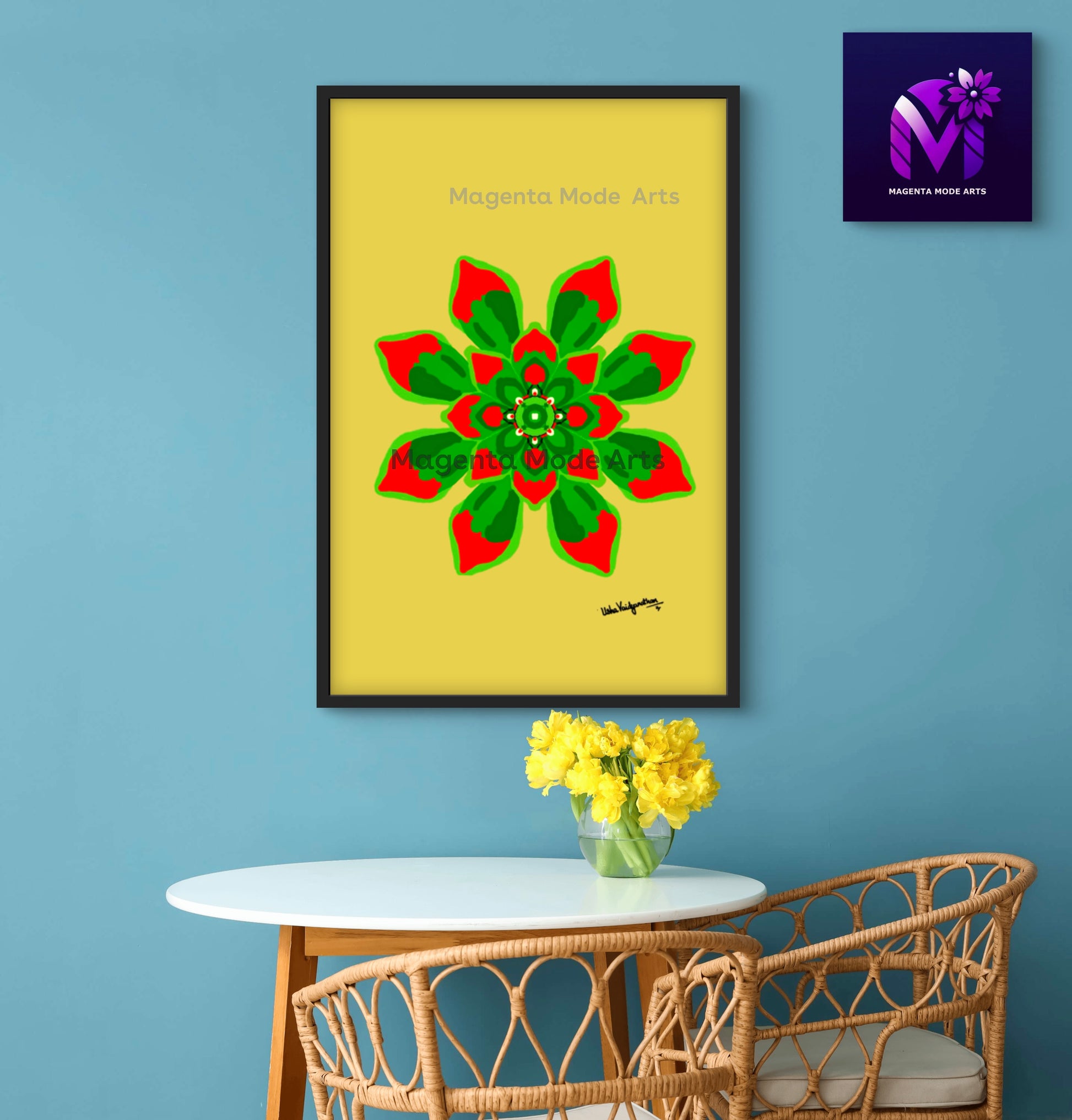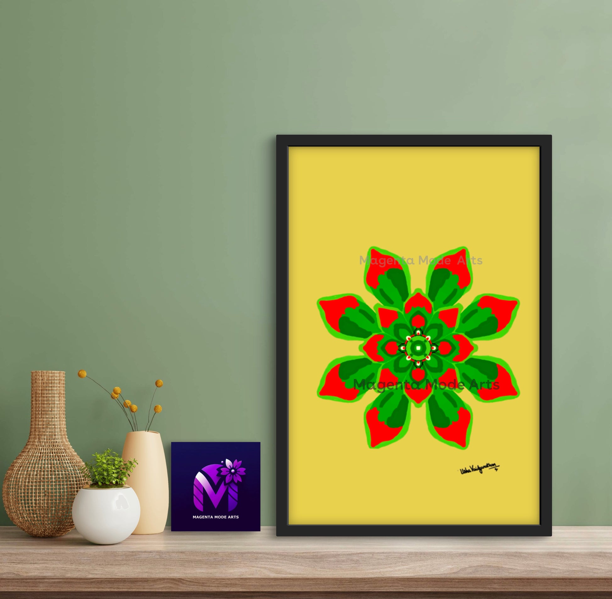 From the artist and palette poet - Mango Succulent is a hand drawn art which consists of the lovely mango colour background to contrast the evergreen red succulent flower design.