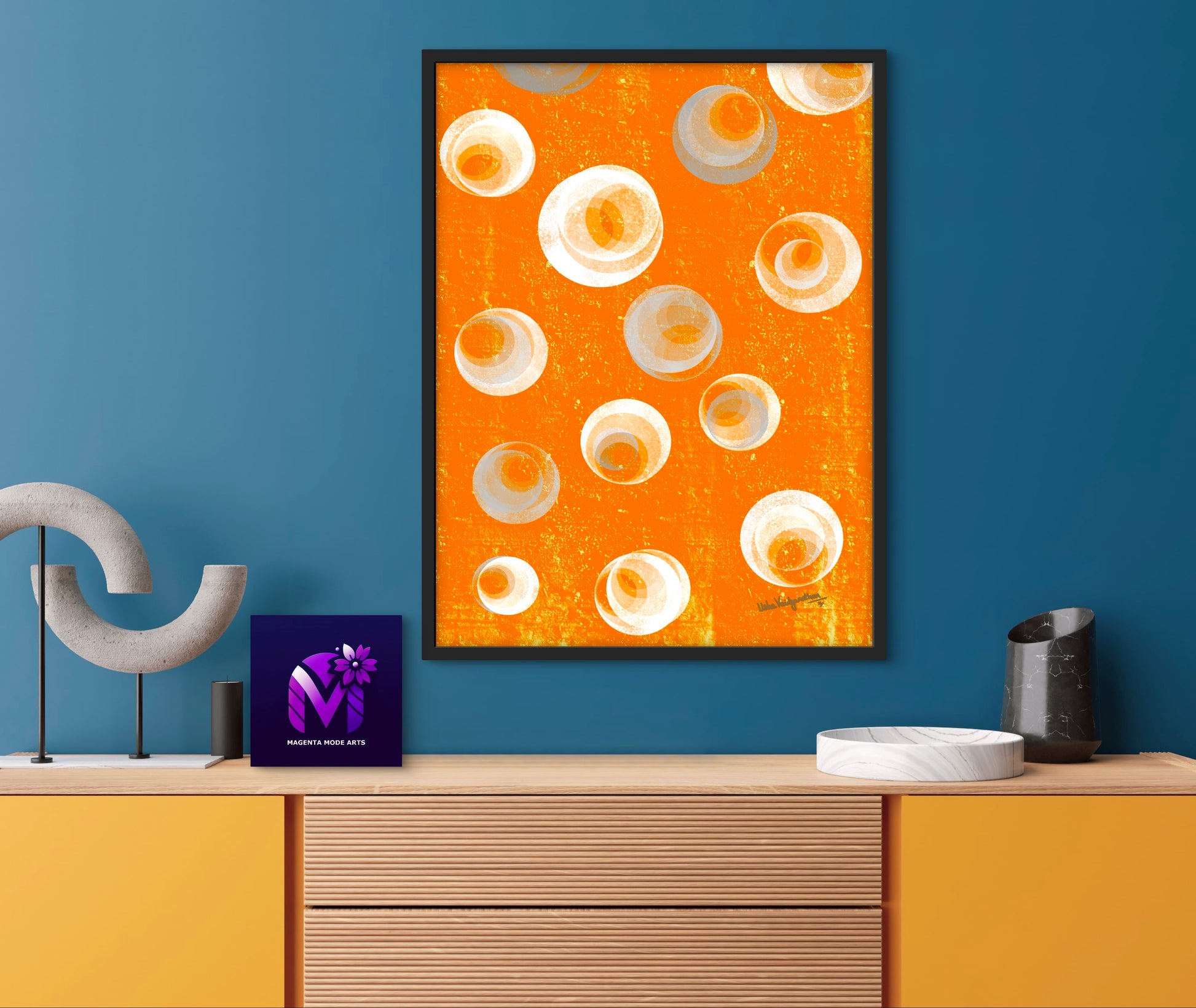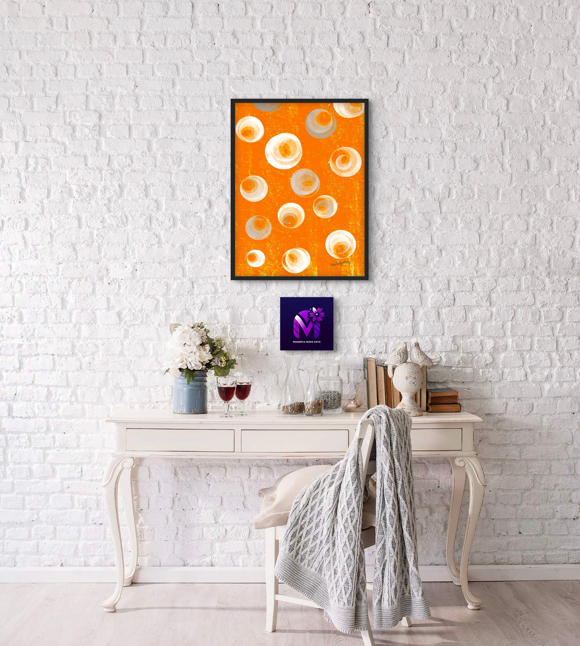 From the artist and palette poet - Orange bubbles is a handmade minimalist type of art which talks brings to life bubbles at sunset time with the vibrant colour Orange.