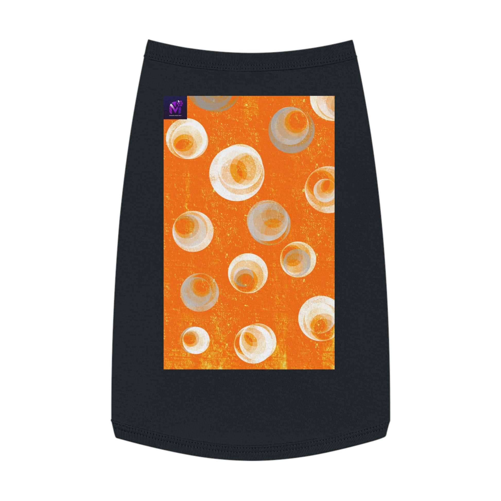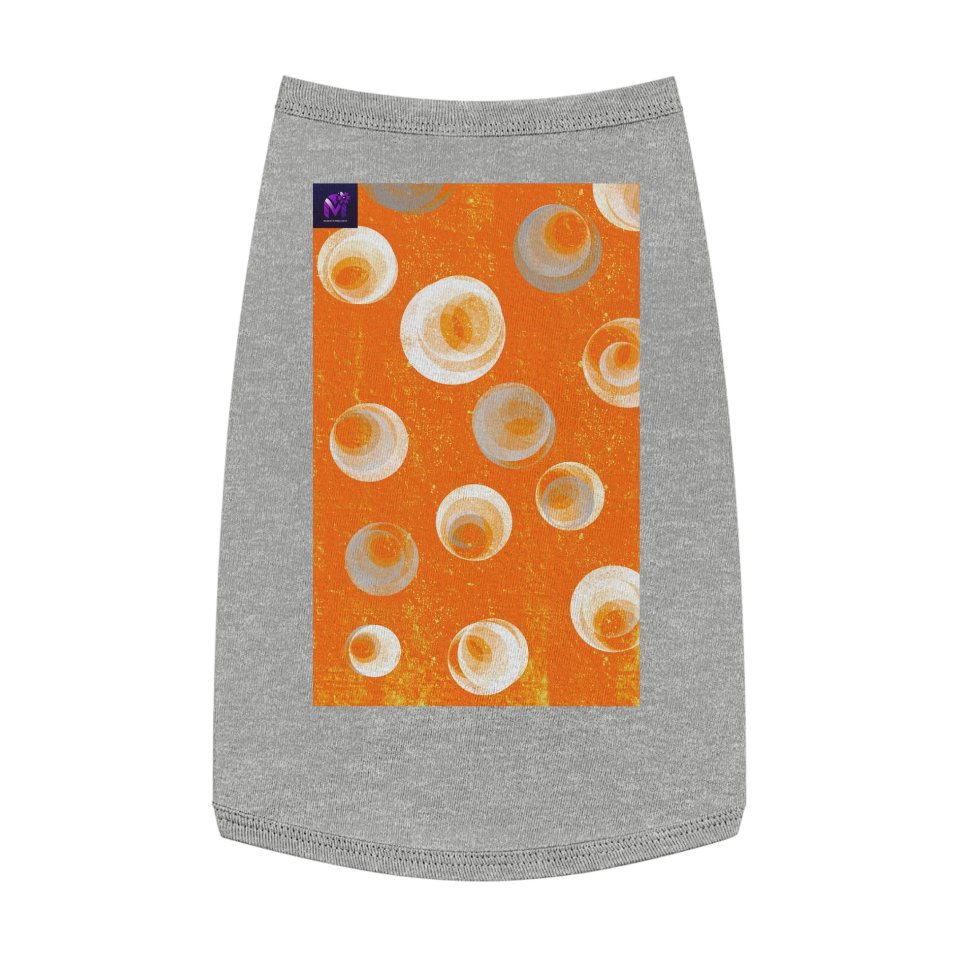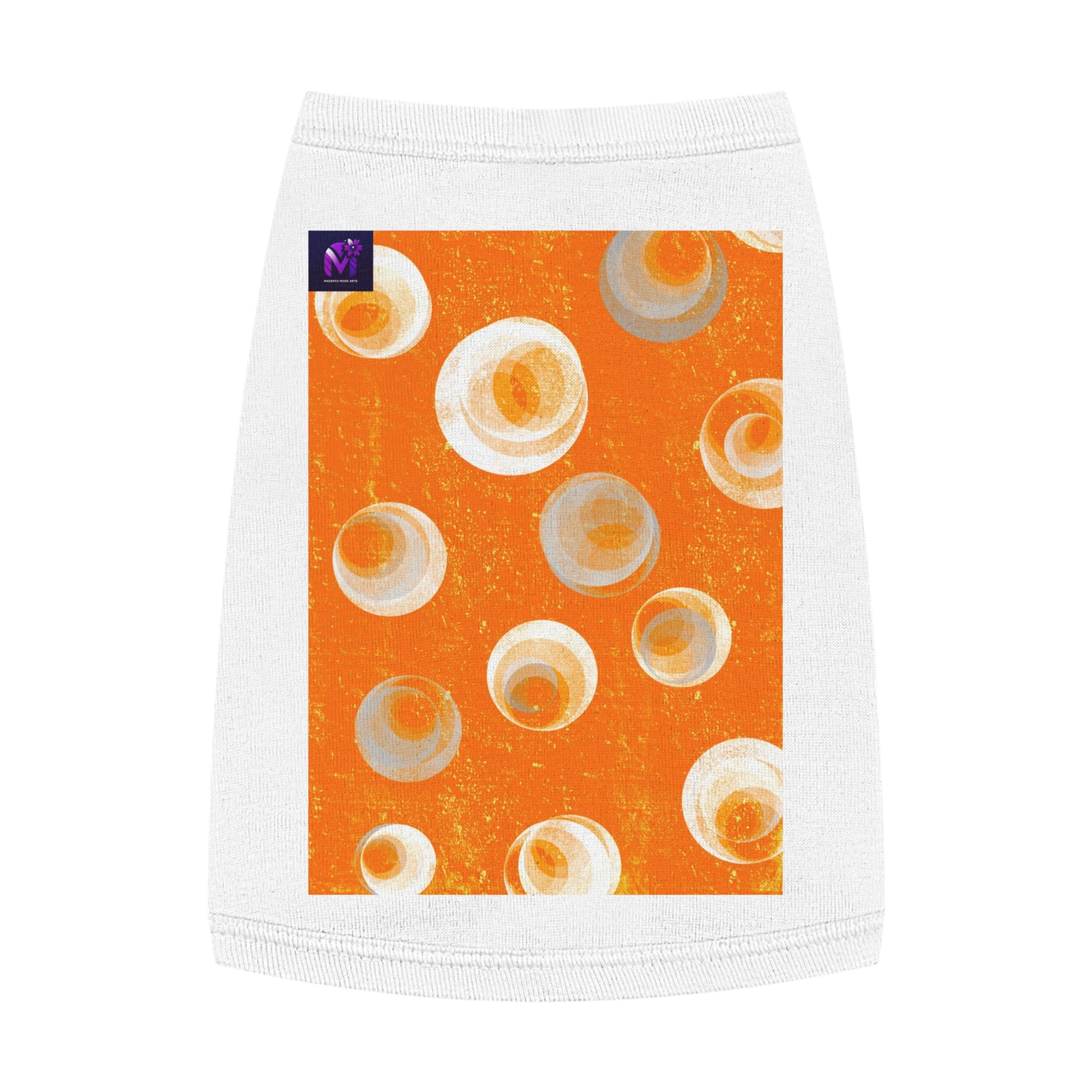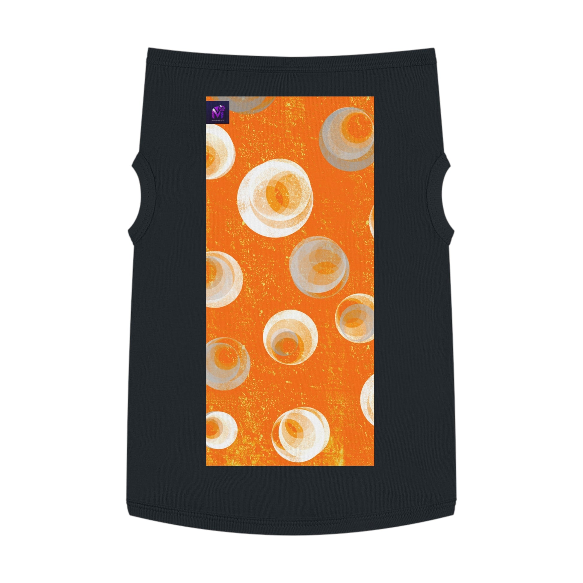 Designer Pet clothes are more than just good fashion, they’re also perfect for keeping your tiny (or not so tiny) friend warm. This pet tank in vibrant ‘Orange Bubbles’ print is 100% cotton for base colours but includes polyester in heather variations. It is safe to machine wash and comes in multiple sizes: M - XL. For breeds with larger chests, sizing up is recommended.