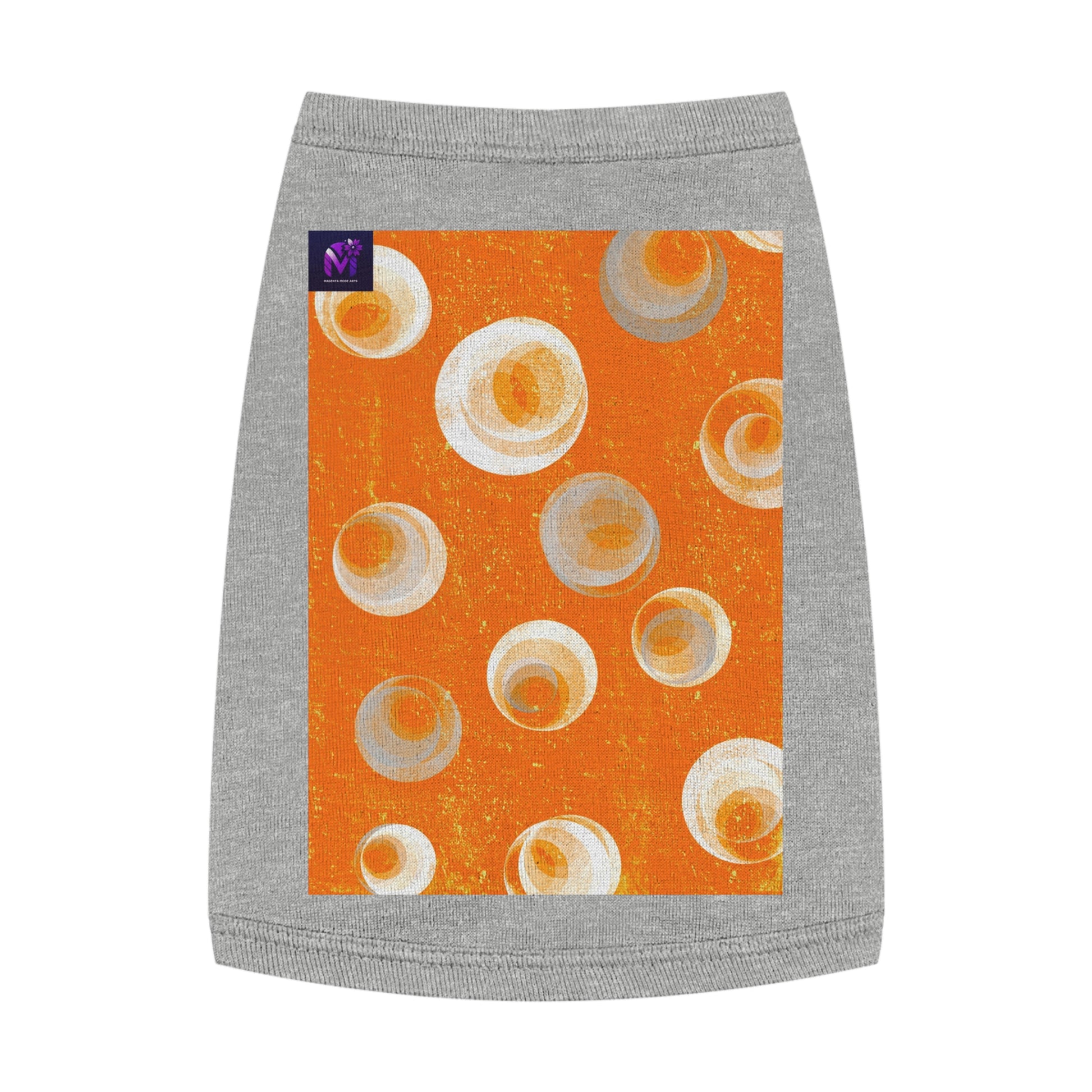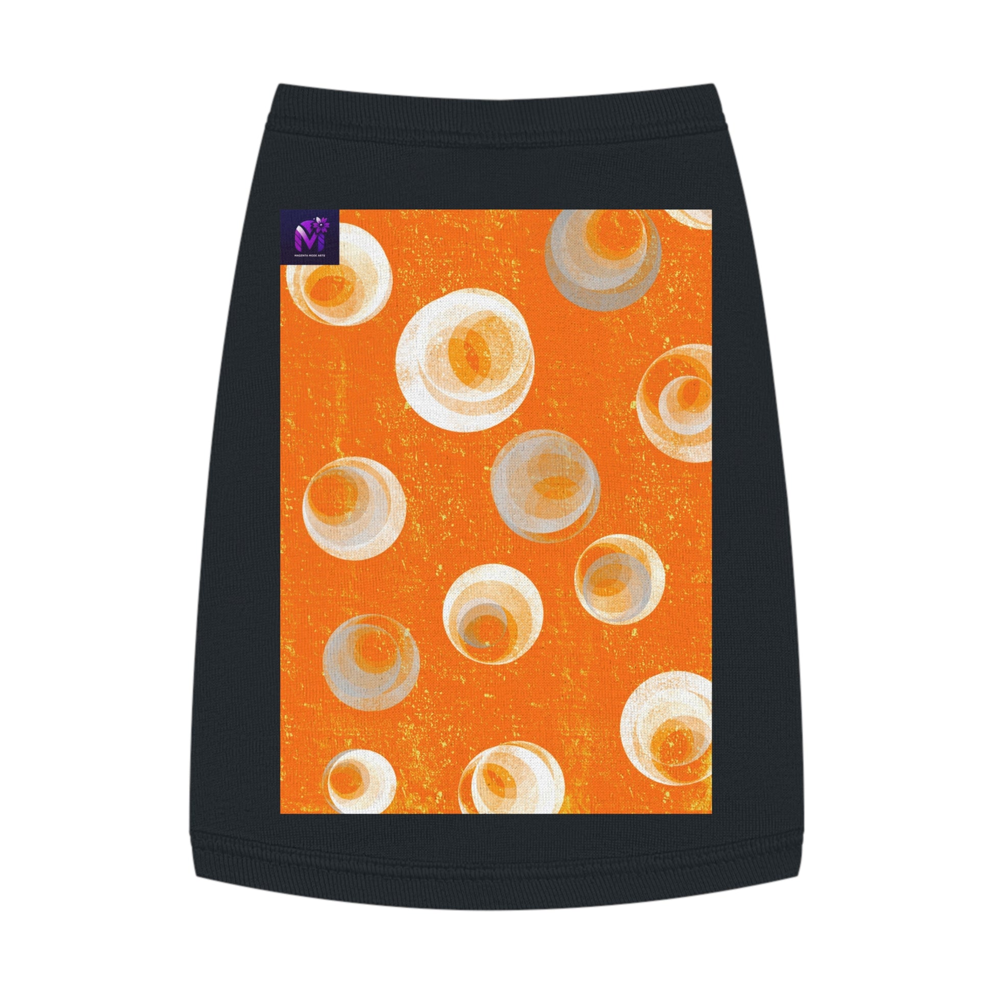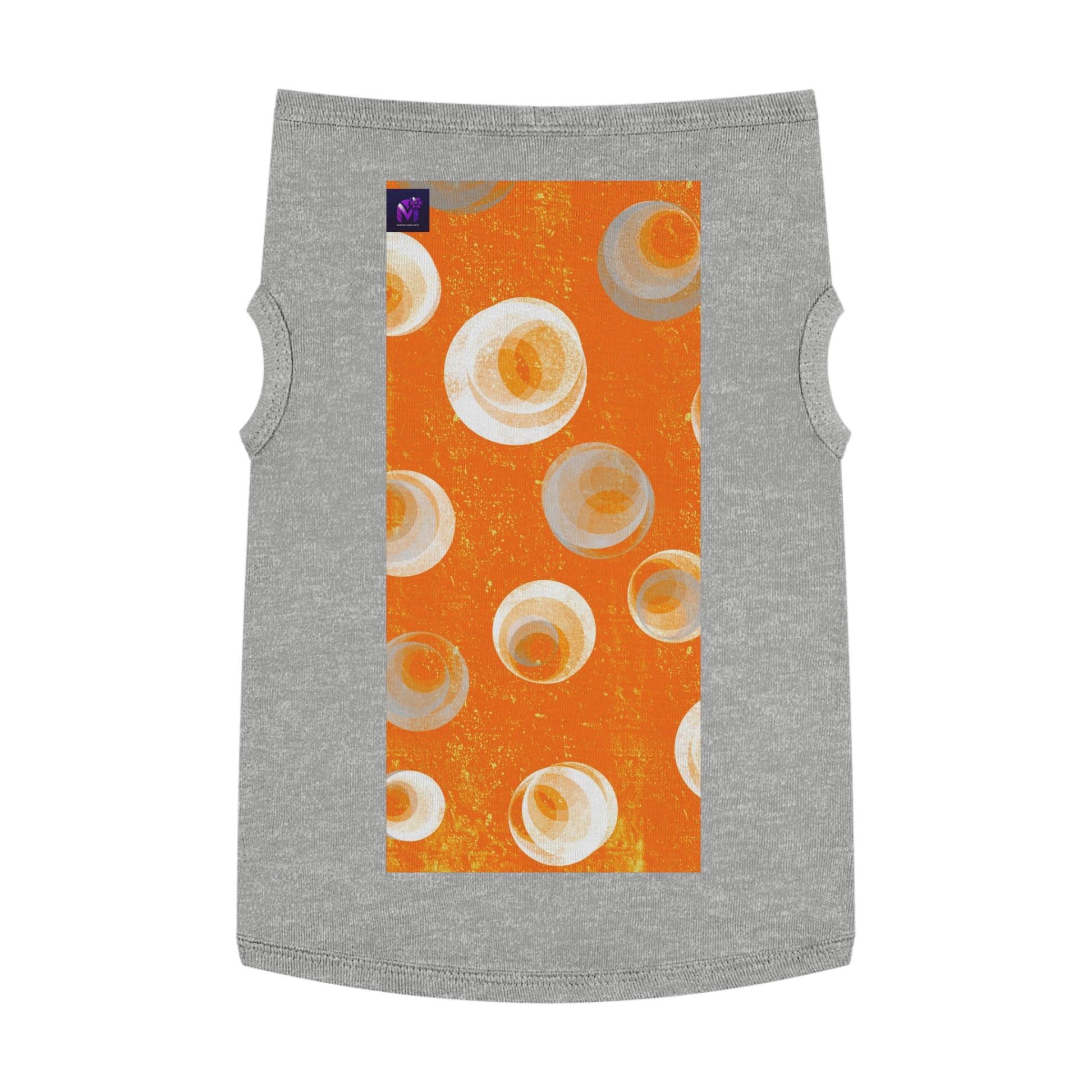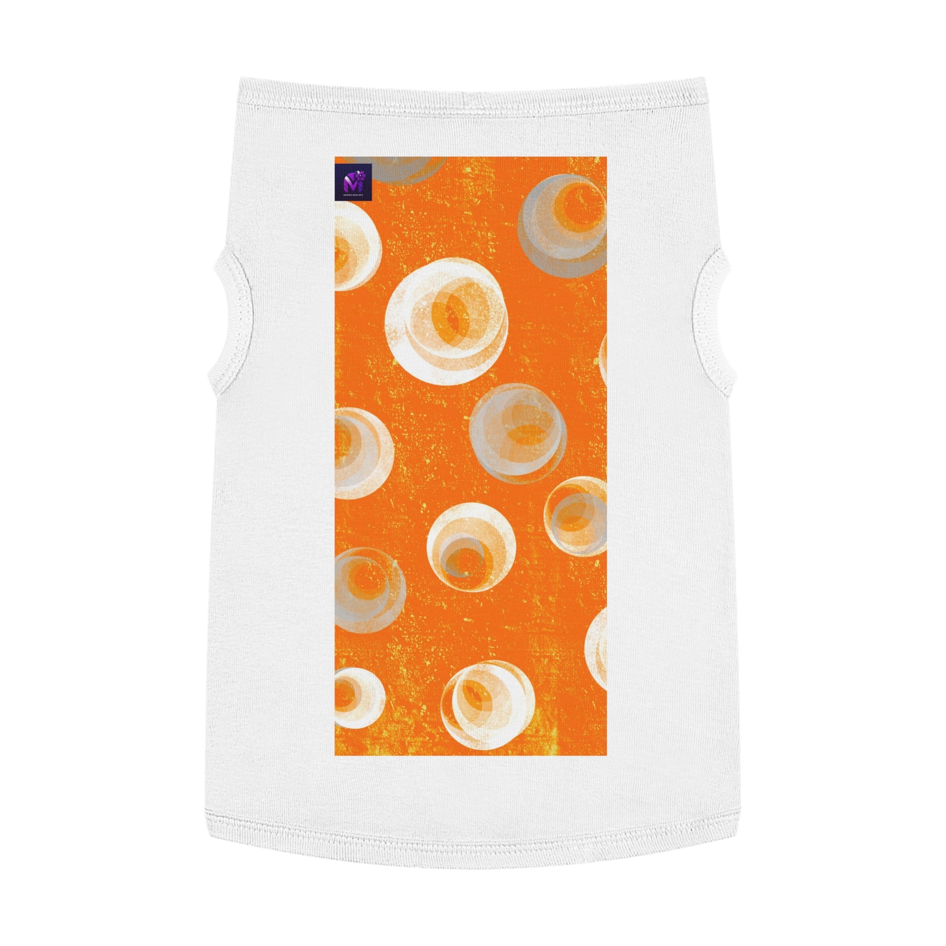 Designer Pet clothes are more than just good fashion, they’re also perfect for keeping your tiny (or not so tiny) friend warm. This pet tank in vibrant ‘Orange Bubbles’ print is 100% cotton for base colours but includes polyester in heather variations. It is safe to machine wash and comes in multiple sizes: M - XL. For breeds with larger chests, sizing up is recommended.
