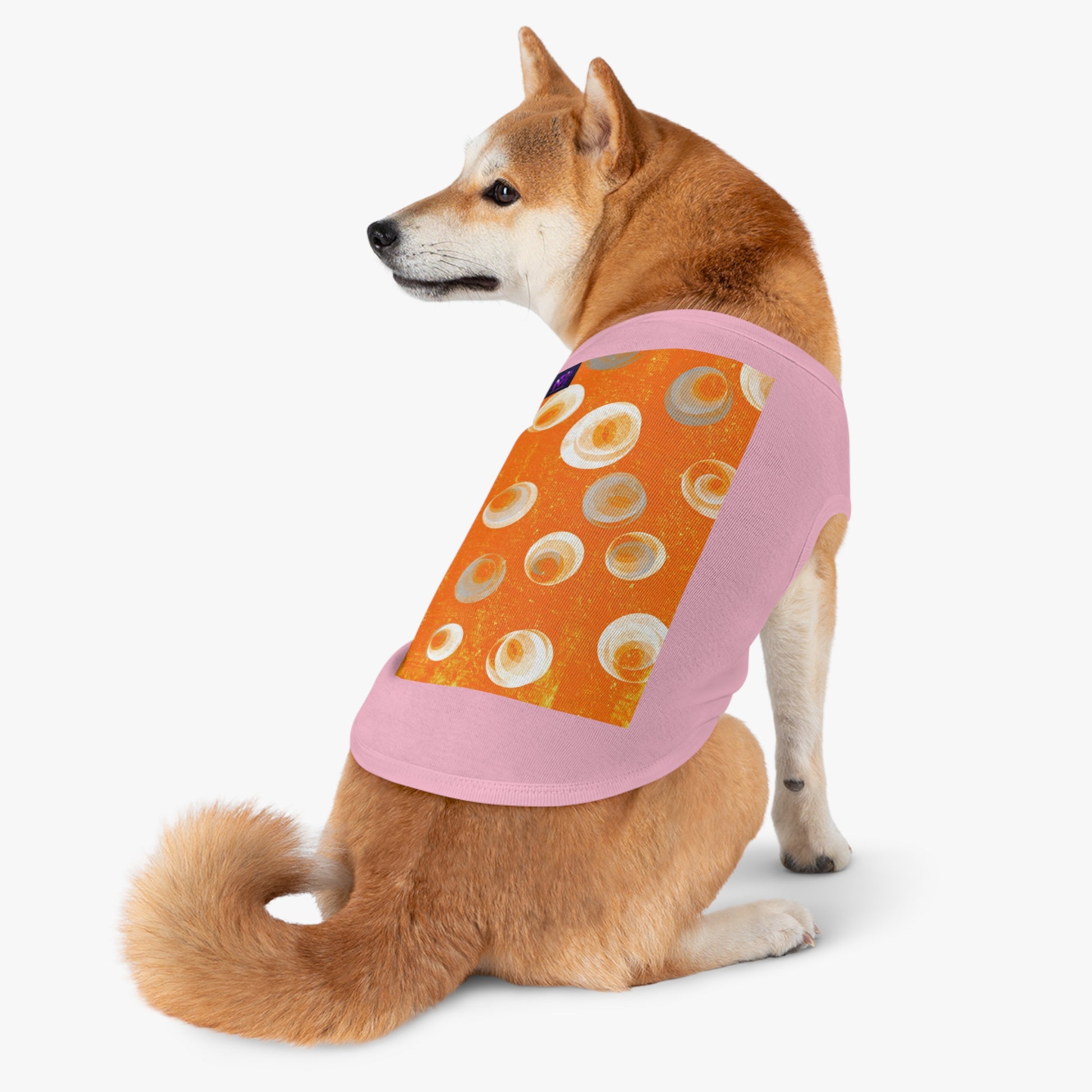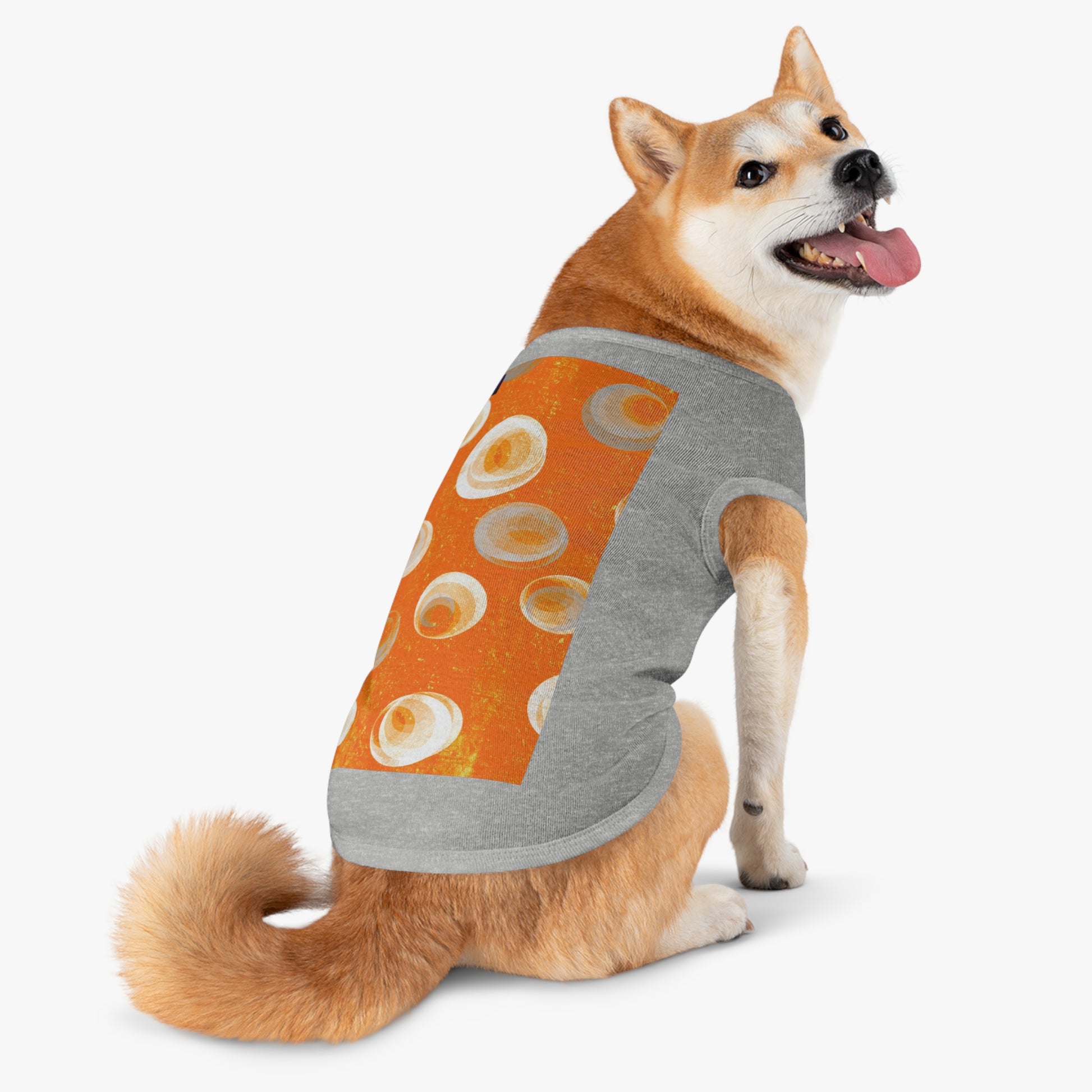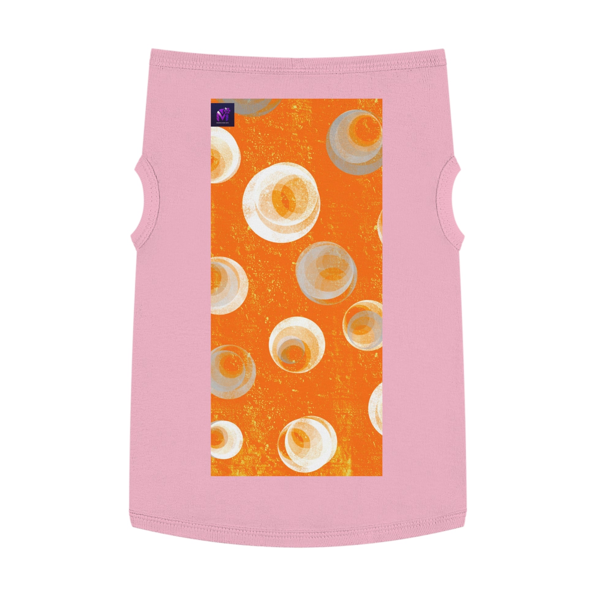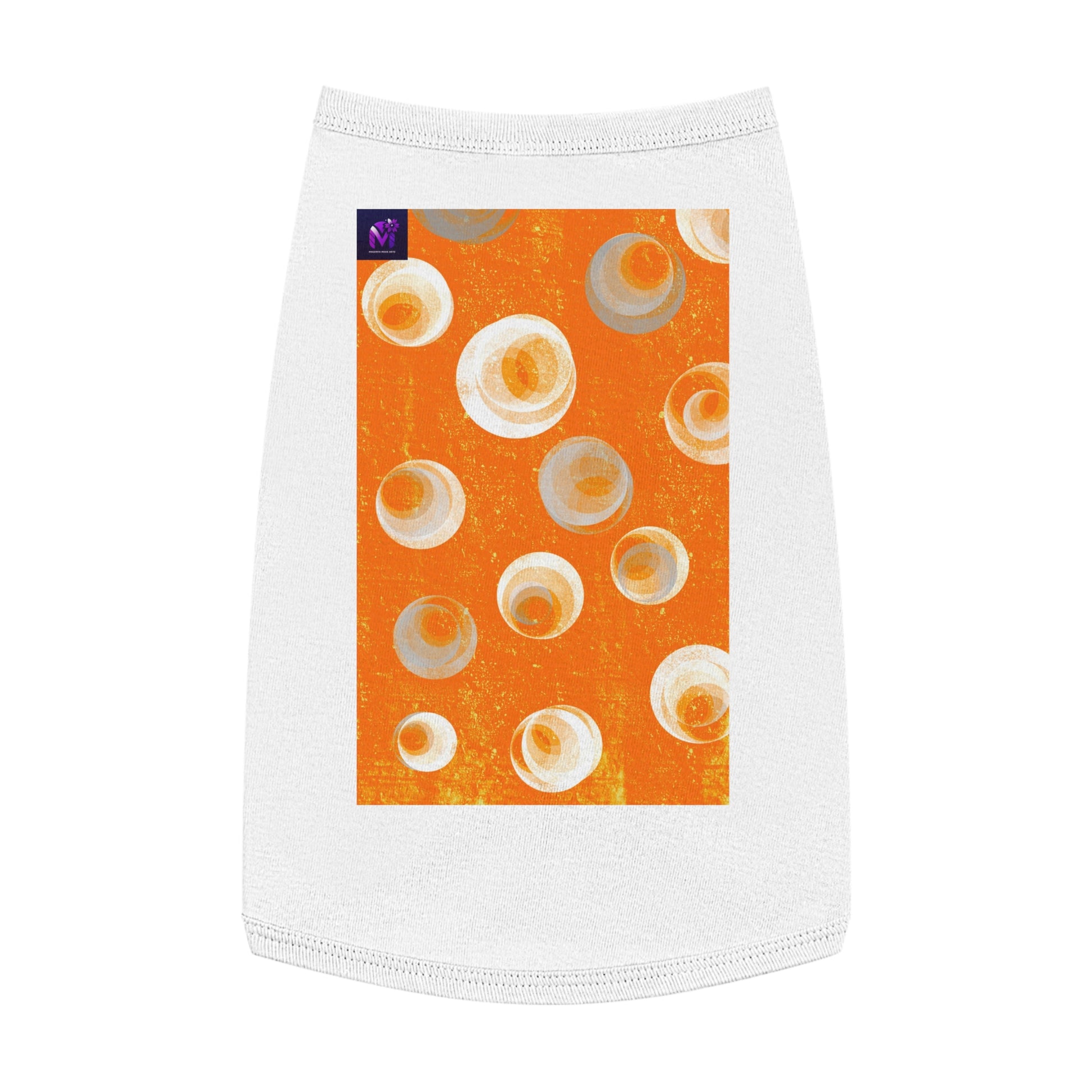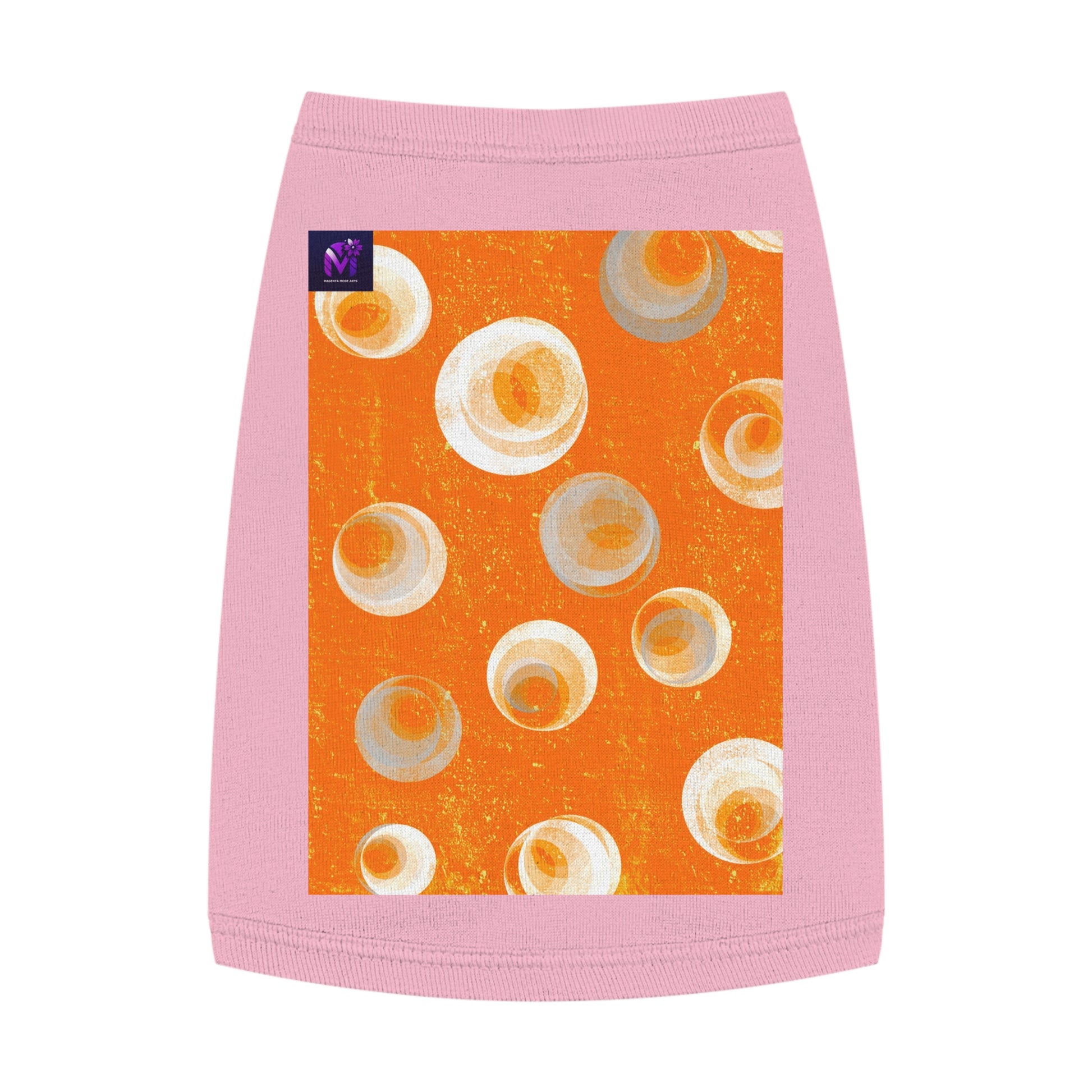 Designer Pet clothes are more than just good fashion, they’re also perfect for keeping your tiny (or not so tiny) friend warm. This pet tank in vibrant ‘Orange Bubbles’ print is 100% cotton for base colours but includes polyester in heather variations. It is safe to machine wash and comes in multiple sizes: M - XL. For breeds with larger chests, sizing up is recommended.