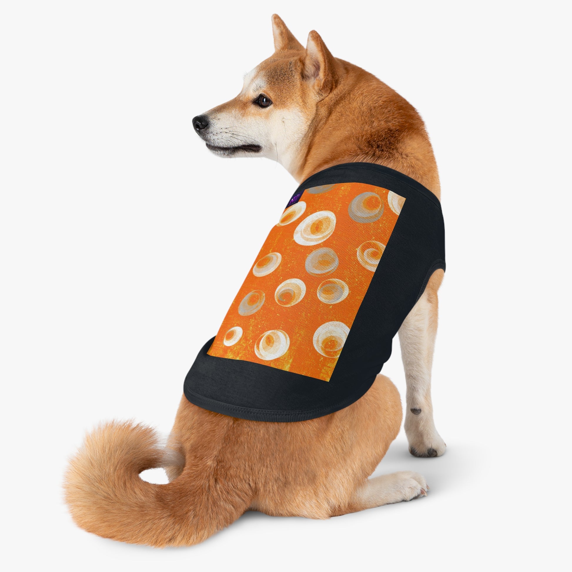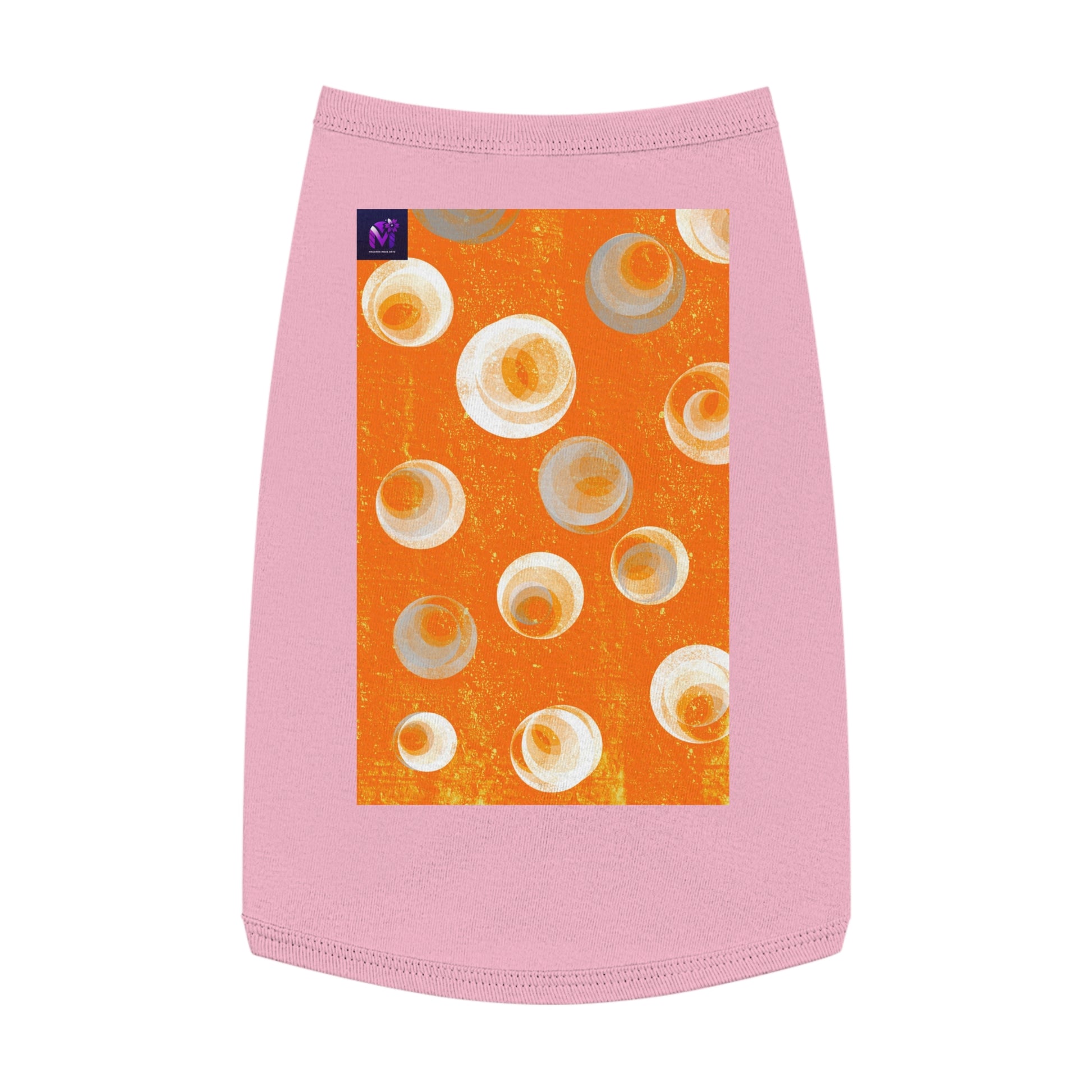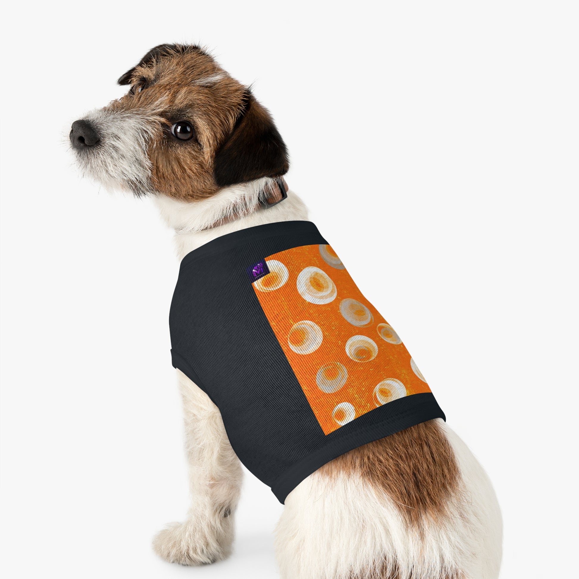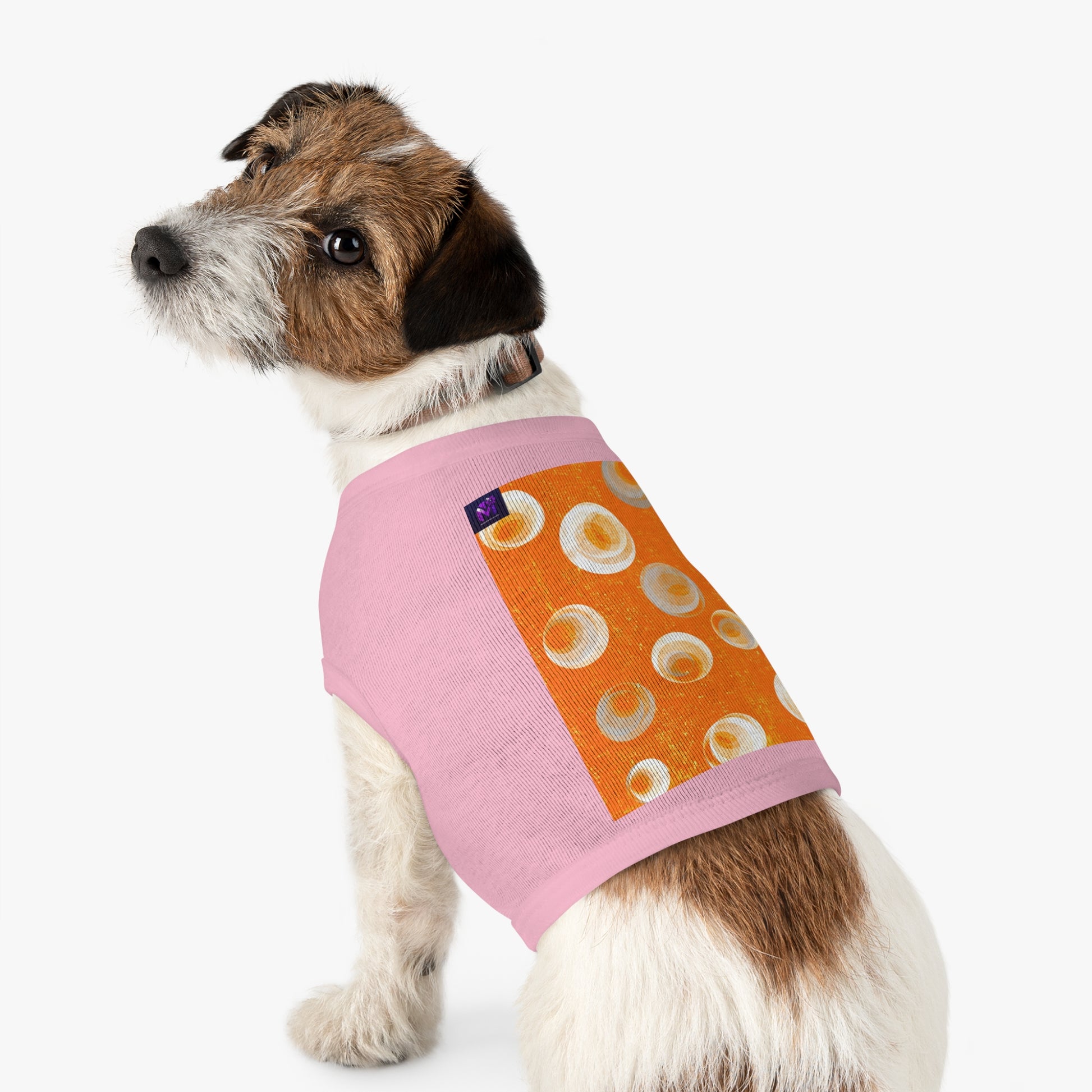 Designer Pet clothes are more than just good fashion, they’re also perfect for keeping your tiny (or not so tiny) friend warm. This pet tank in vibrant ‘Orange Bubbles’ print is 100% cotton for base colours but includes polyester in heather variations. It is safe to machine wash and comes in multiple sizes: M - XL. For breeds with larger chests, sizing up is recommended.