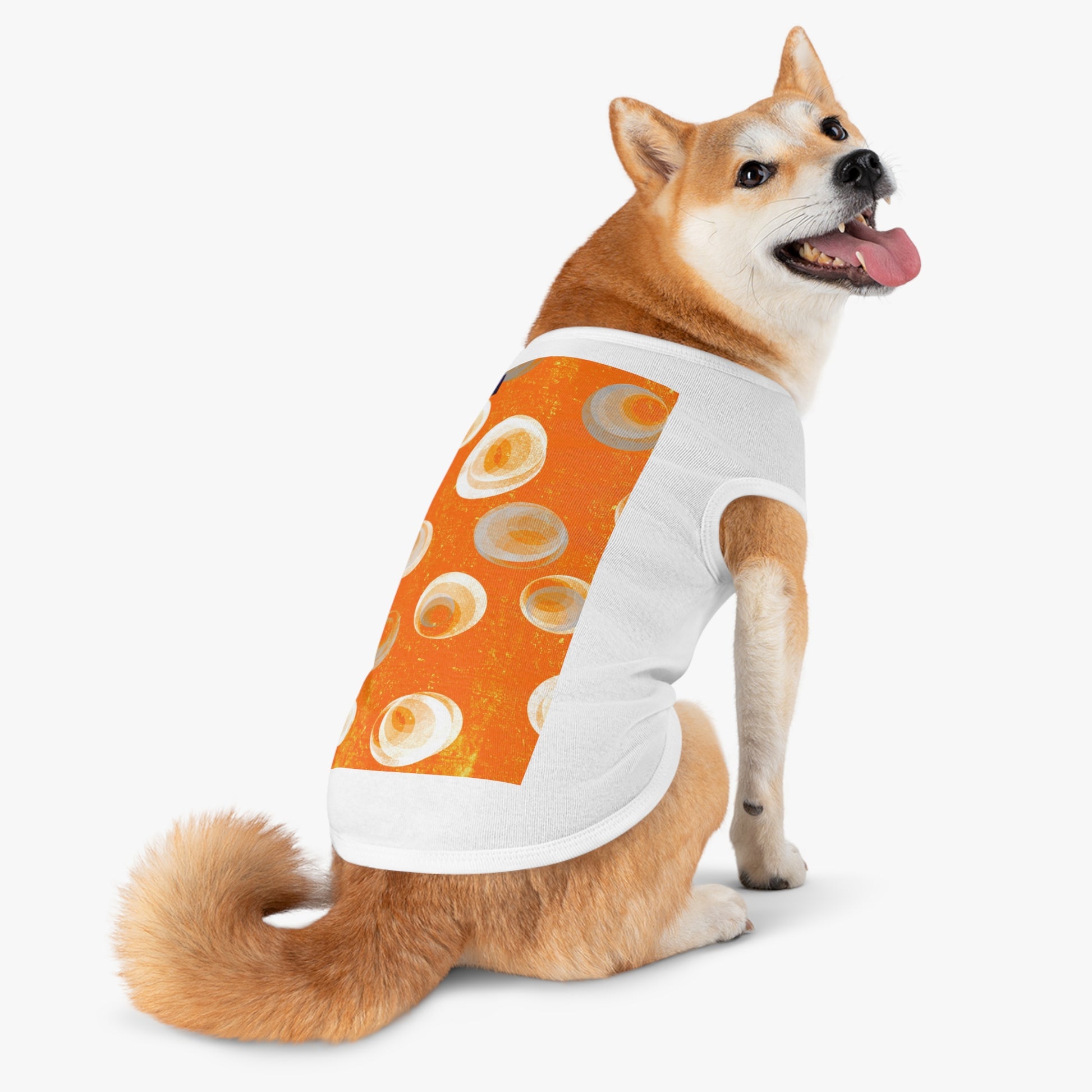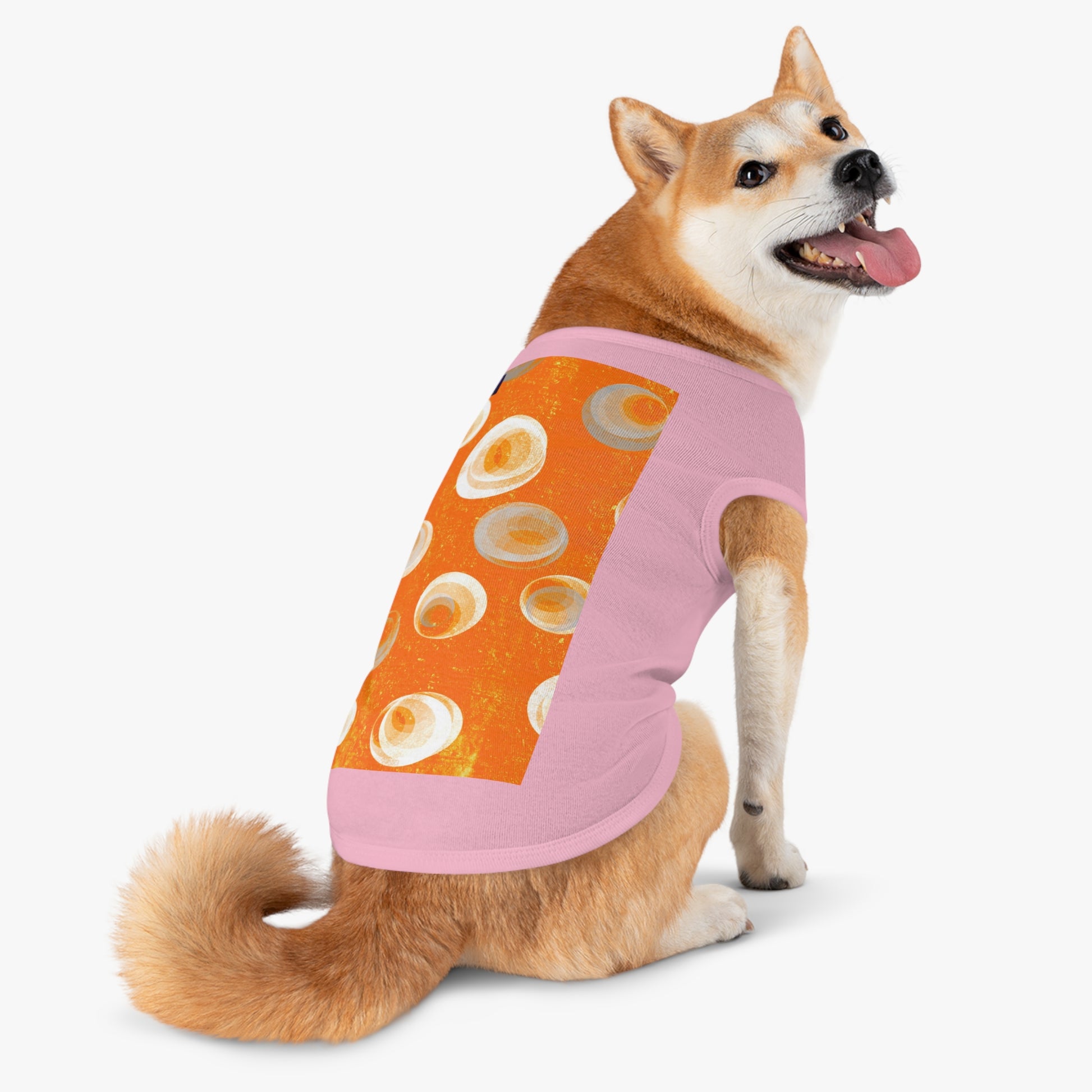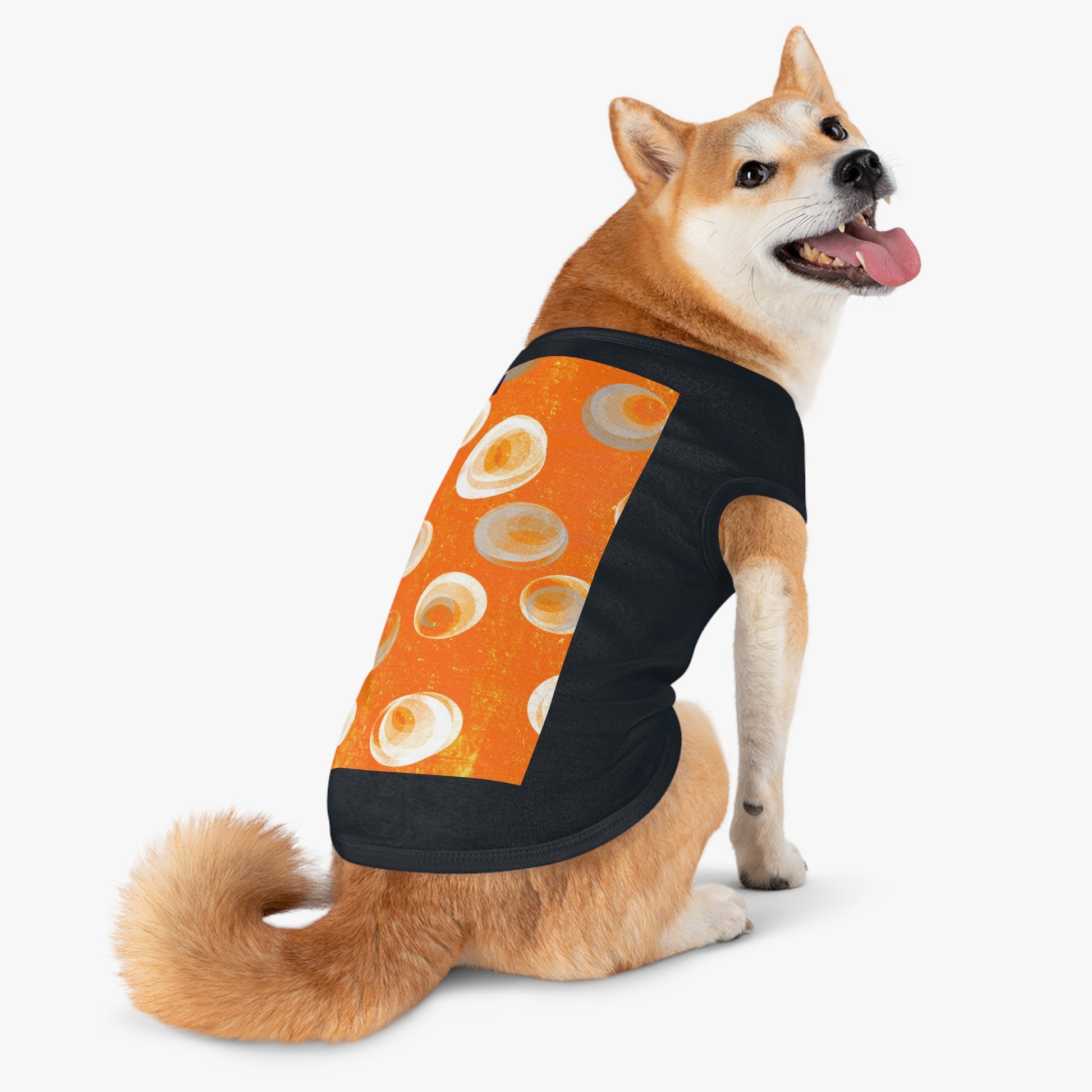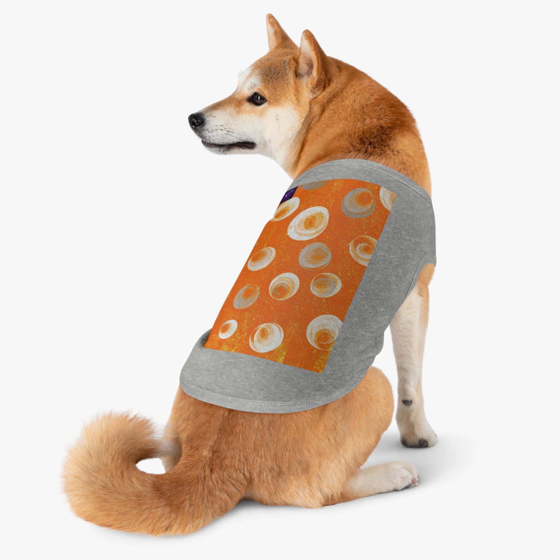 Designer Pet clothes are more than just good fashion, they’re also perfect for keeping your tiny (or not so tiny) friend warm. This pet tank in vibrant ‘Orange Bubbles’ print is 100% cotton for base colours but includes polyester in heather variations. It is safe to machine wash and comes in multiple sizes: M - XL. For breeds with larger chests, sizing up is recommended.