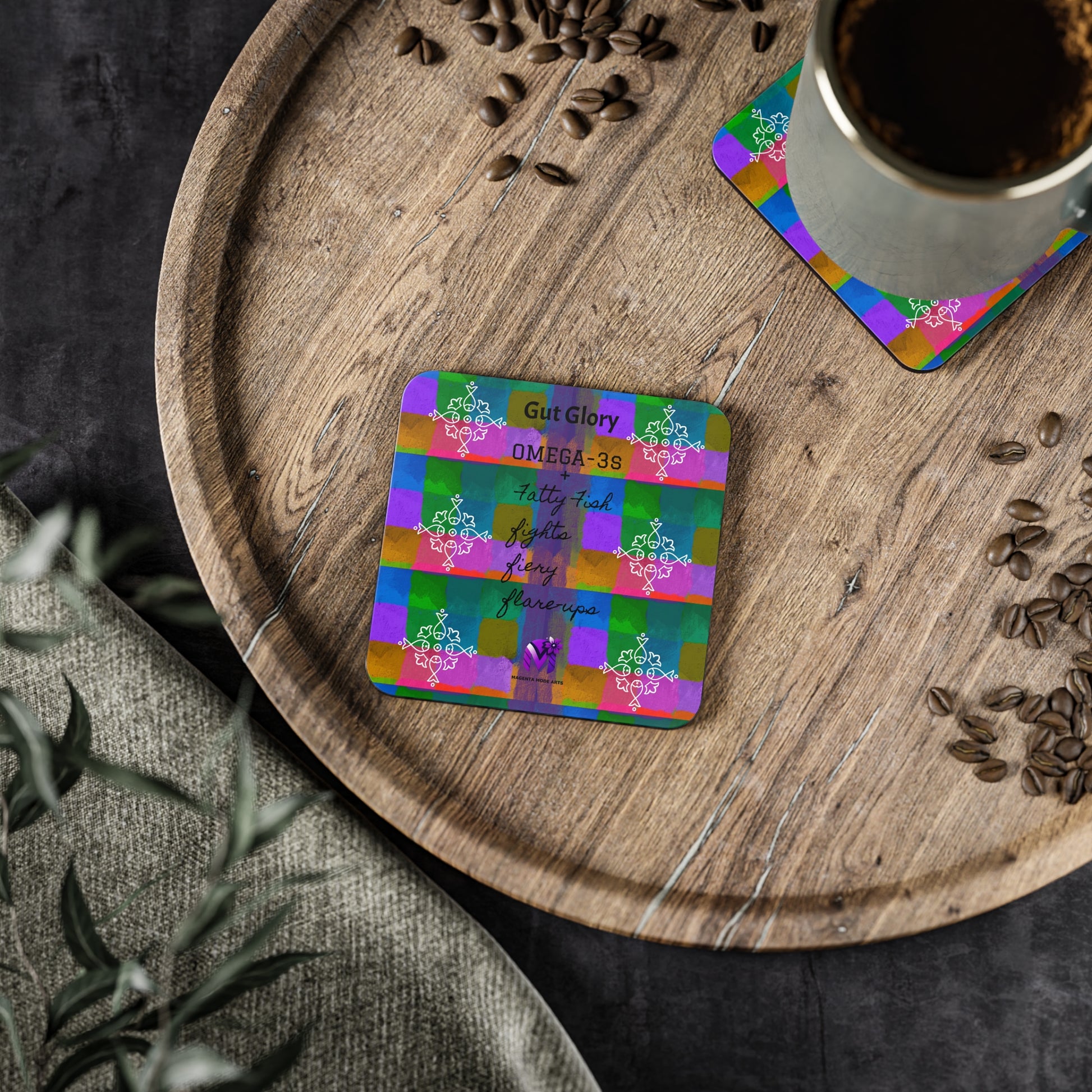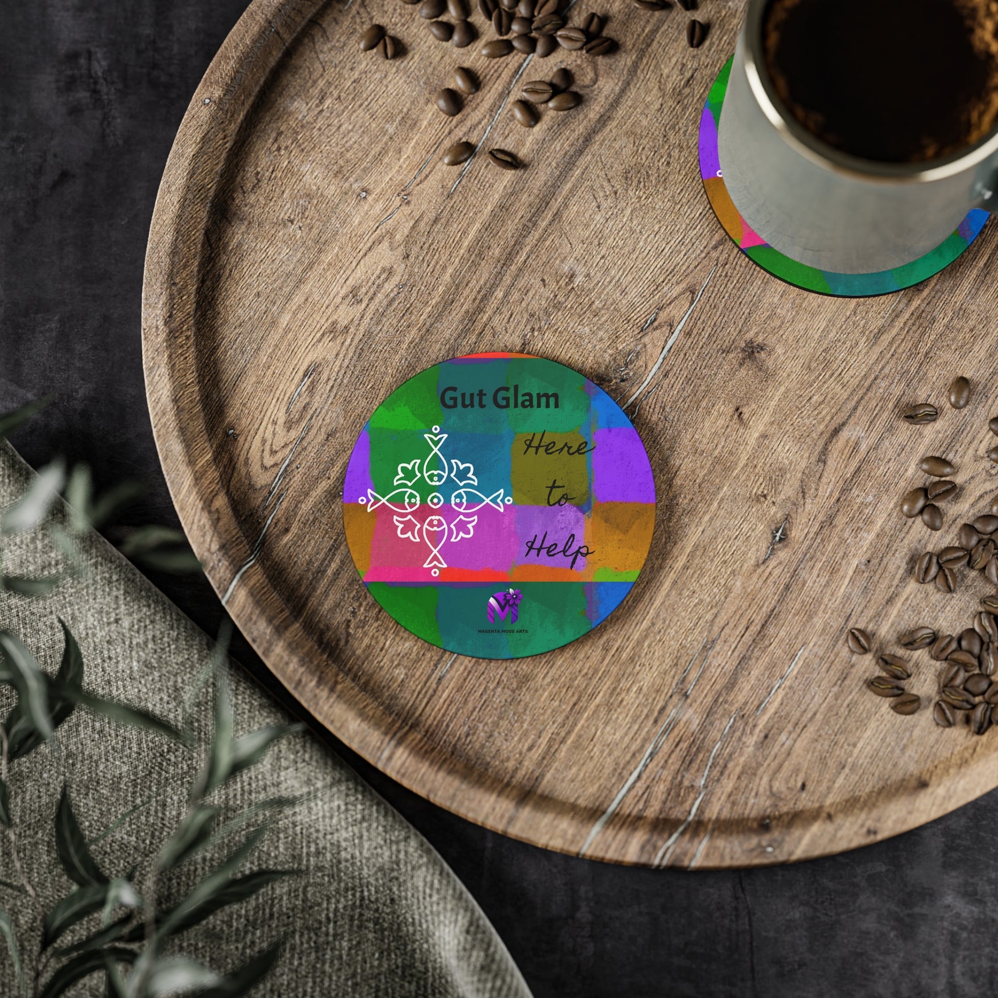 This exclusive coaster for Gut health from Magenta Mode arts,features a concise wellness message or affirmation —perfect for reinforcing positive habits and emotional wellbeing in clinical spaces.