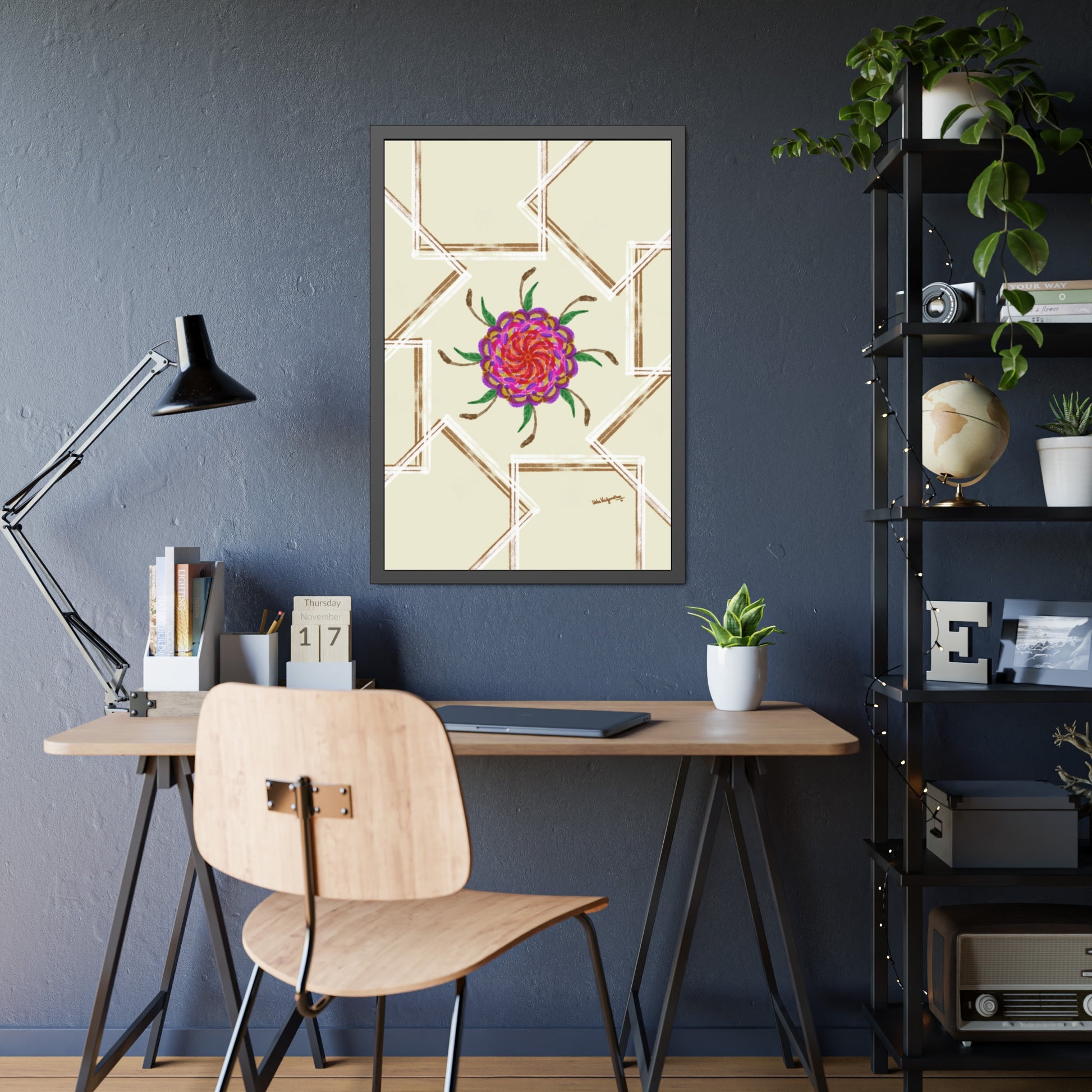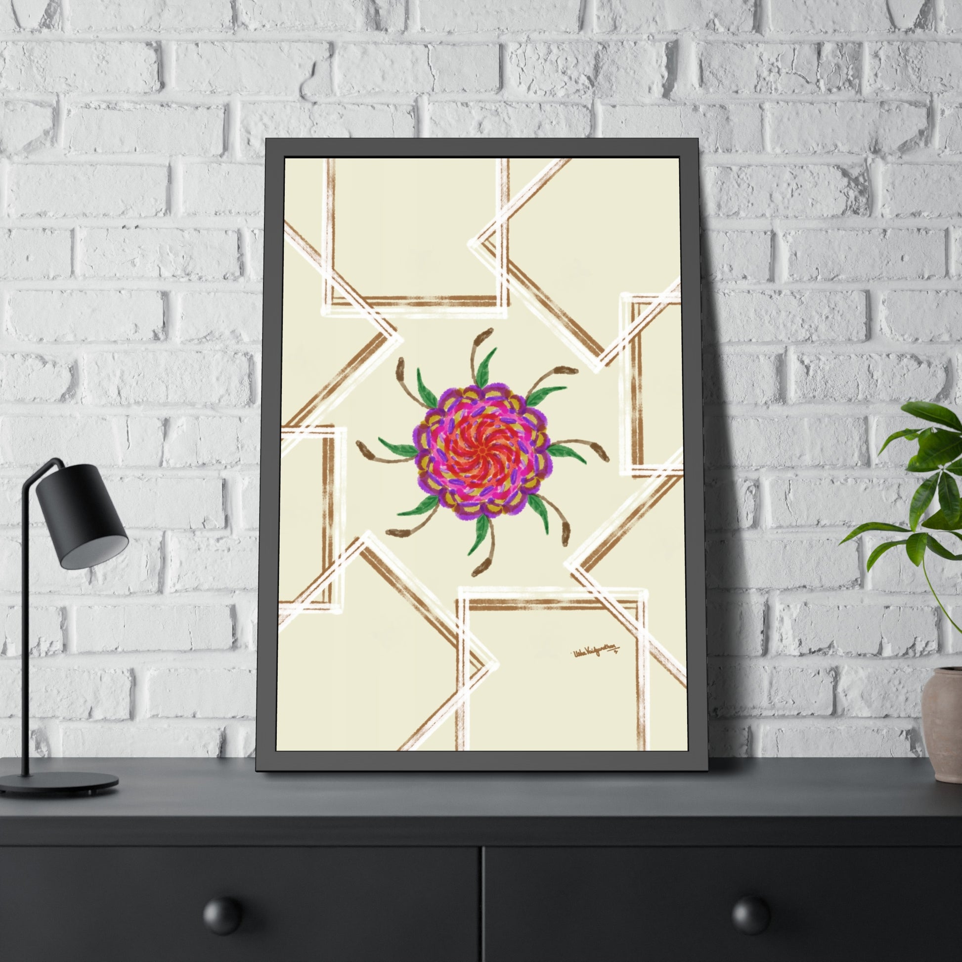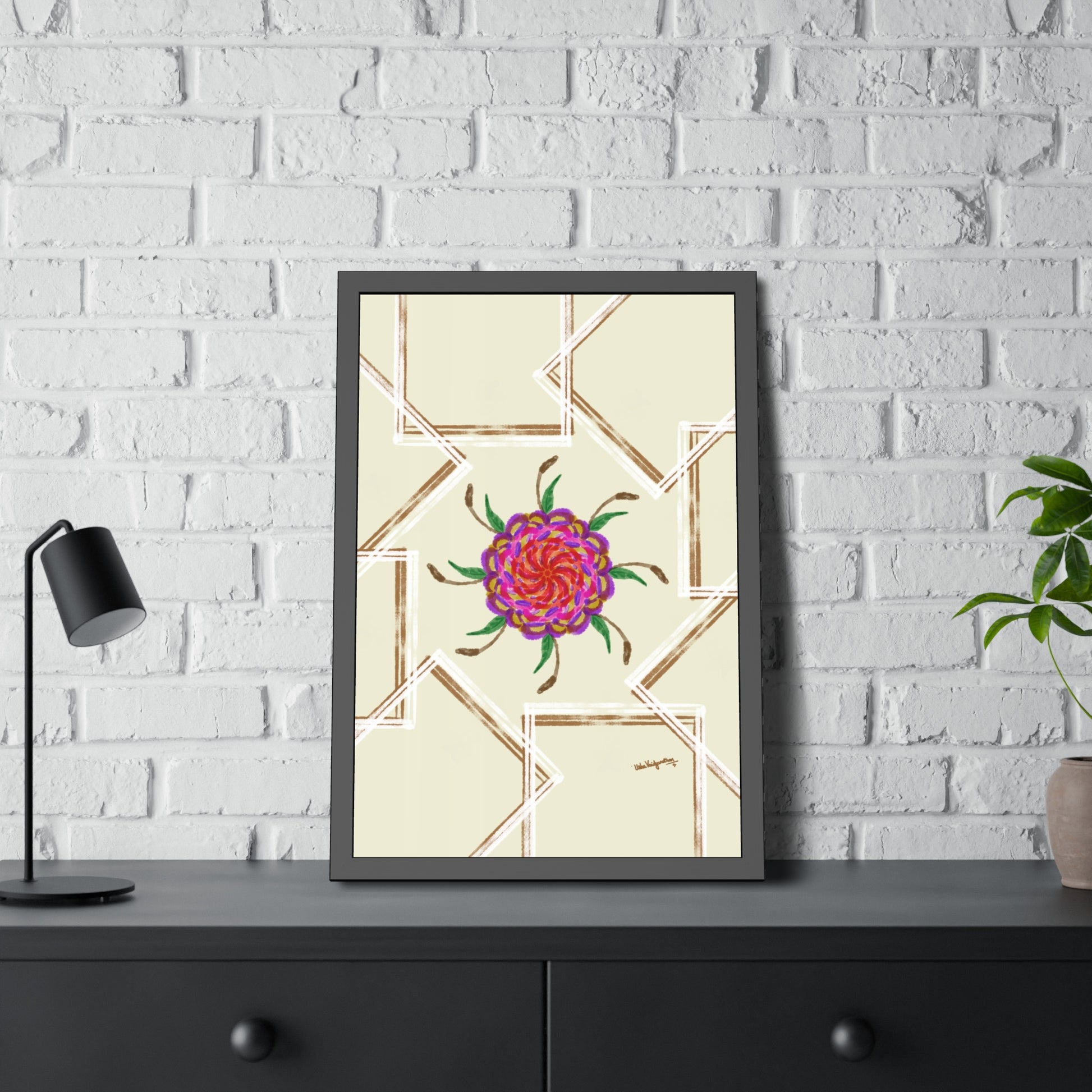 UV Magenta flower -Framed Art