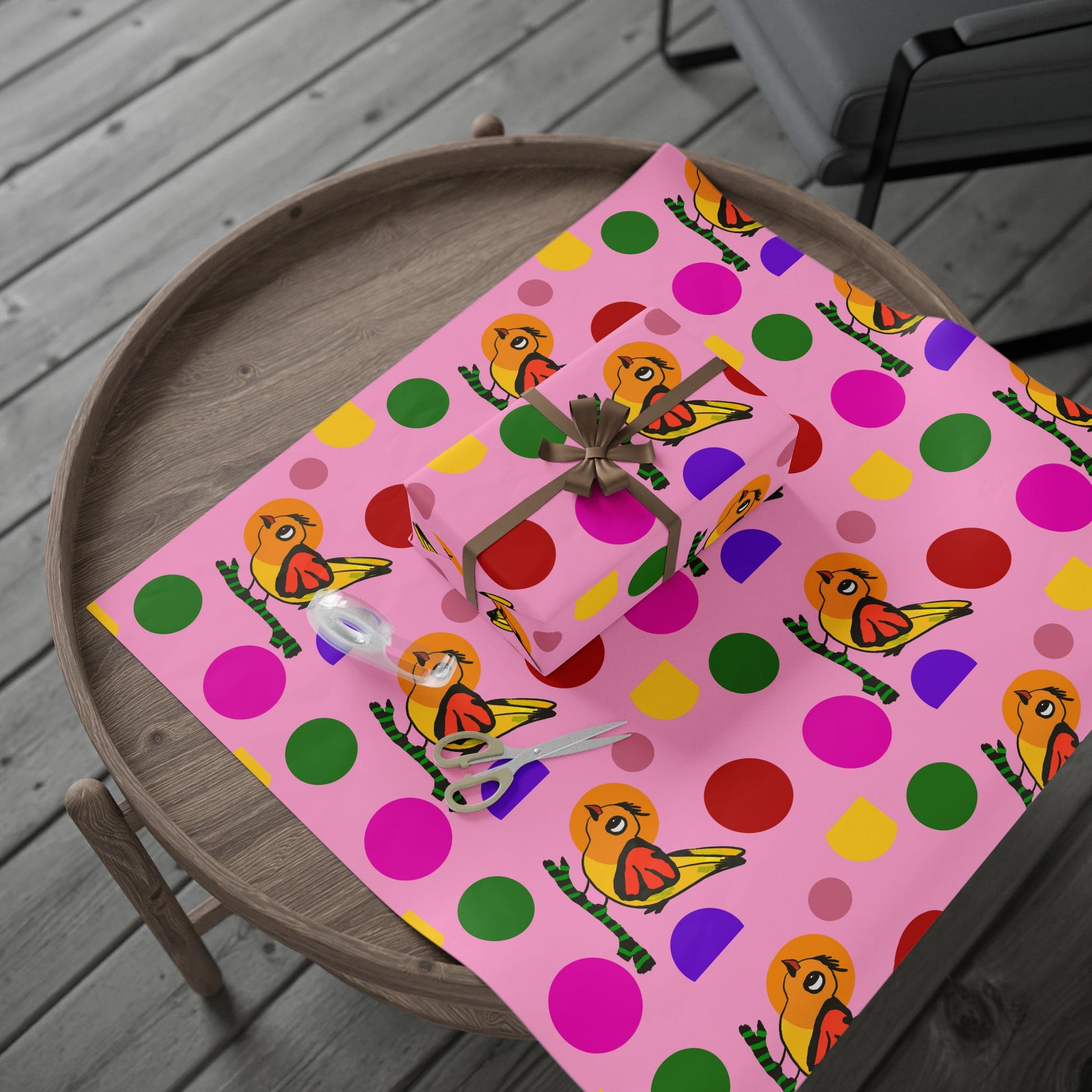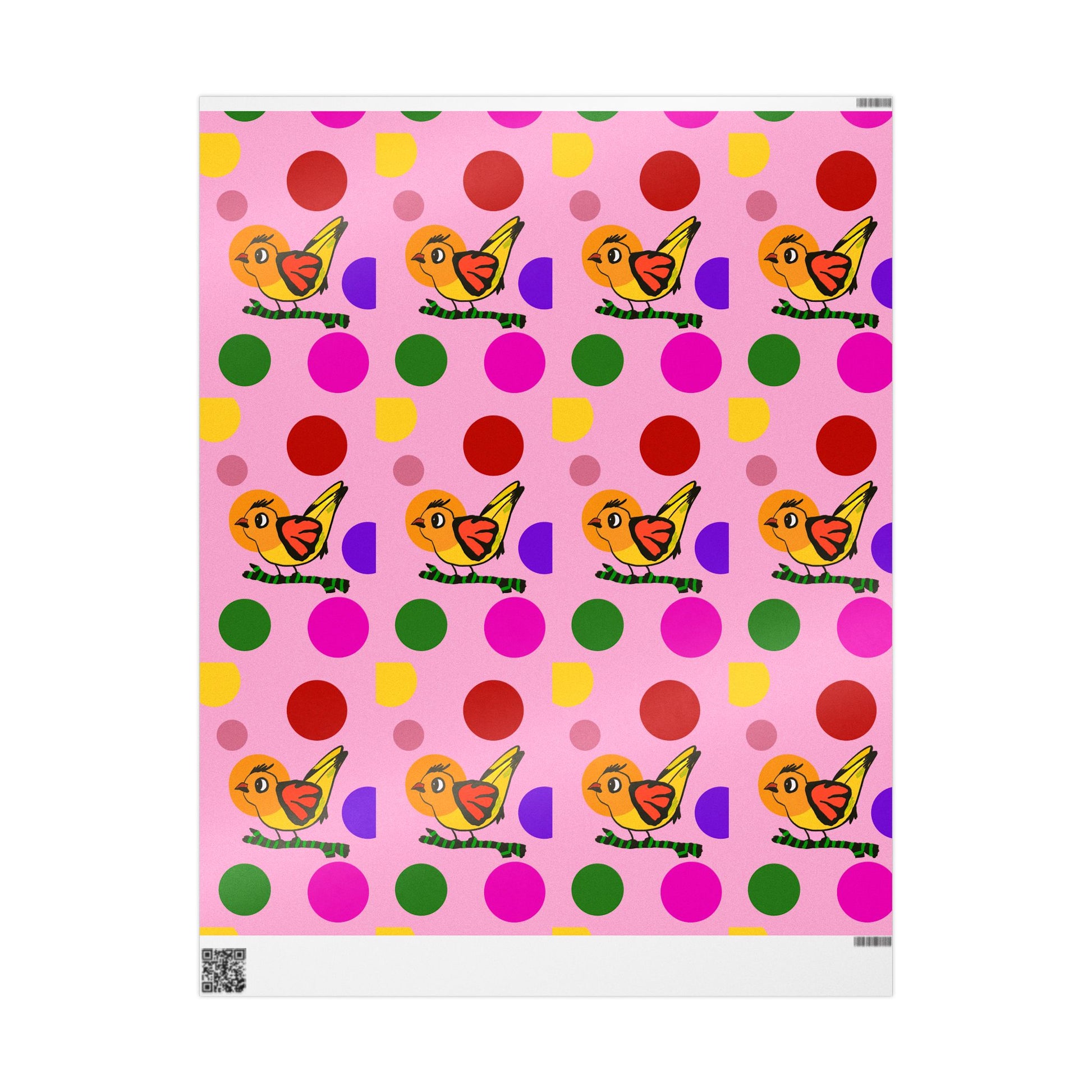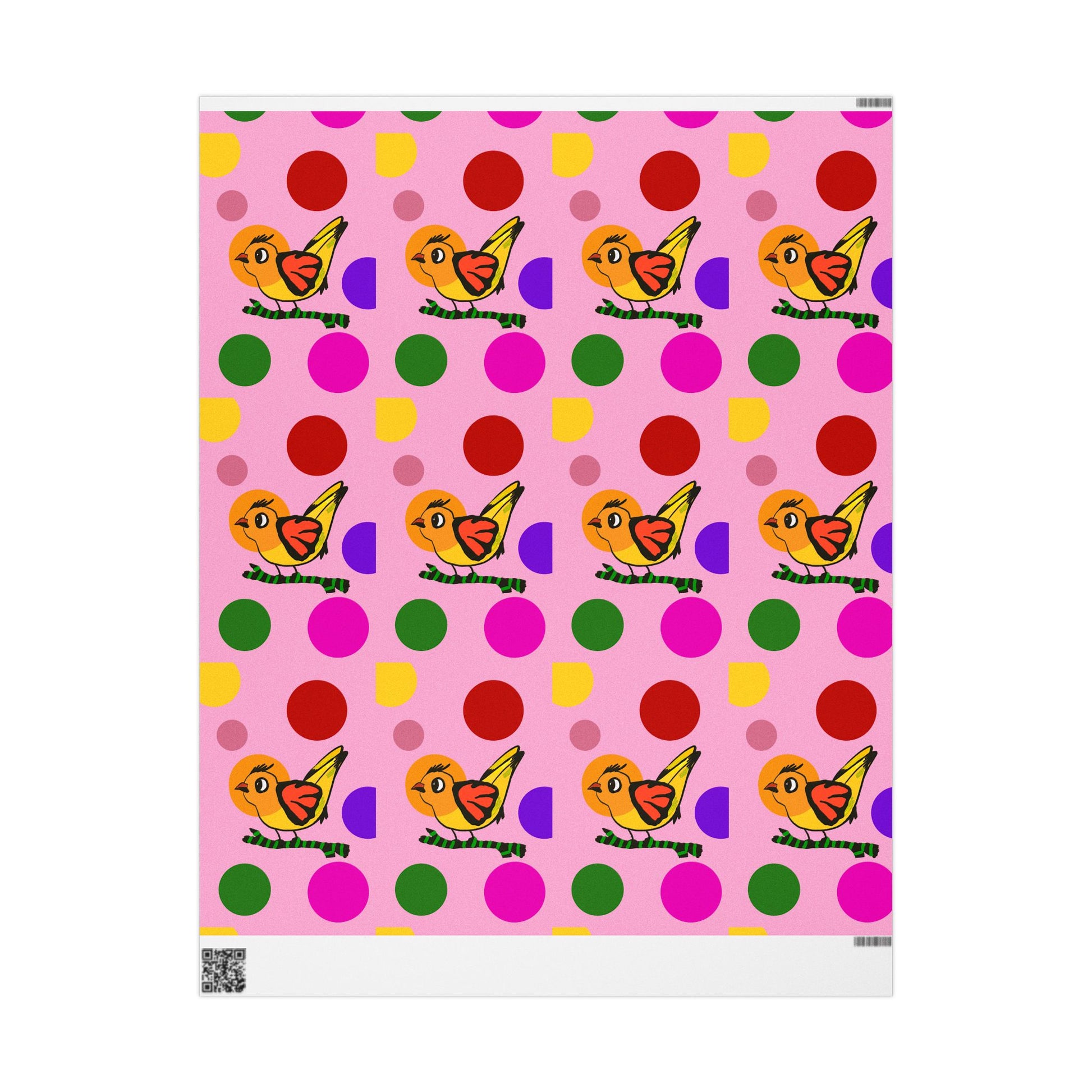 Festive Chirp & Cheer Wrap- only at Magenta Mode arts: Where birds sing and dots dance in pink, red & green delight!" Don't miss these wrapping papers with cute prints from our store this season.
