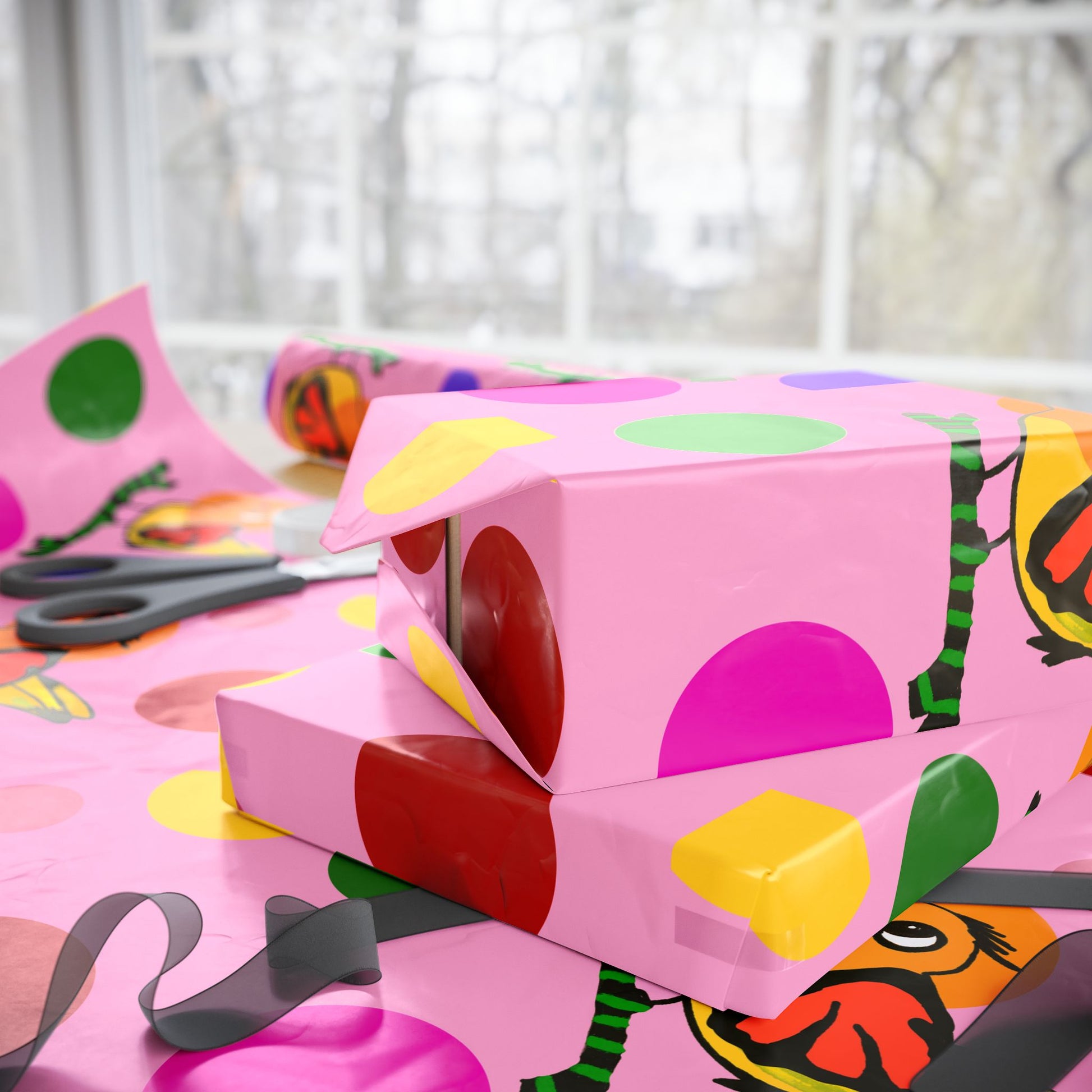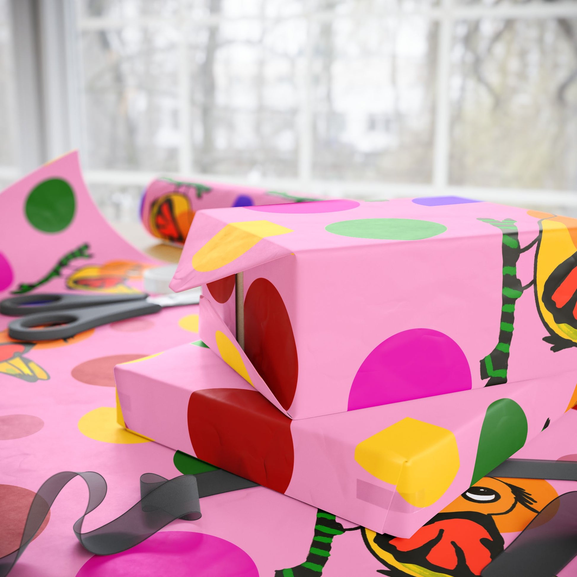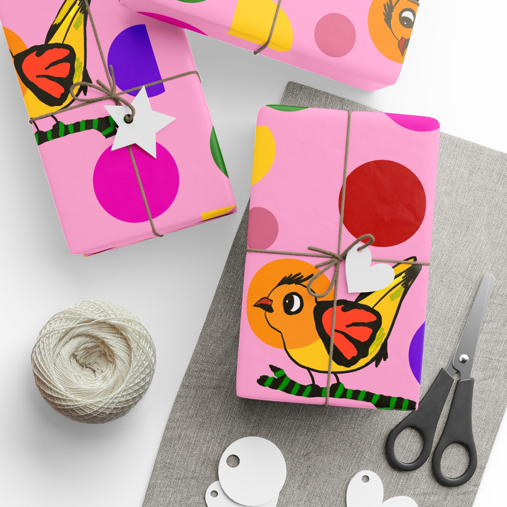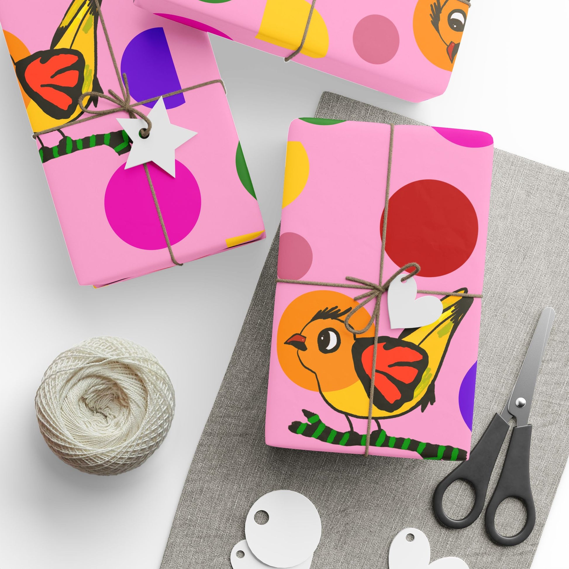 Festive Chirp & Cheer Wrap- only at Magenta Mode arts: Where birds sing and dots dance in pink, red & green delight!" Don't miss these wrapping papers with cute prints from our store this season.